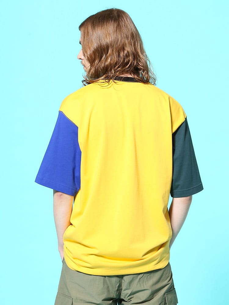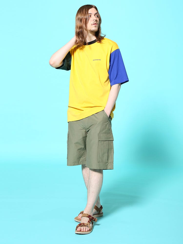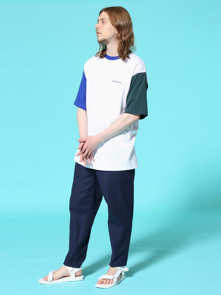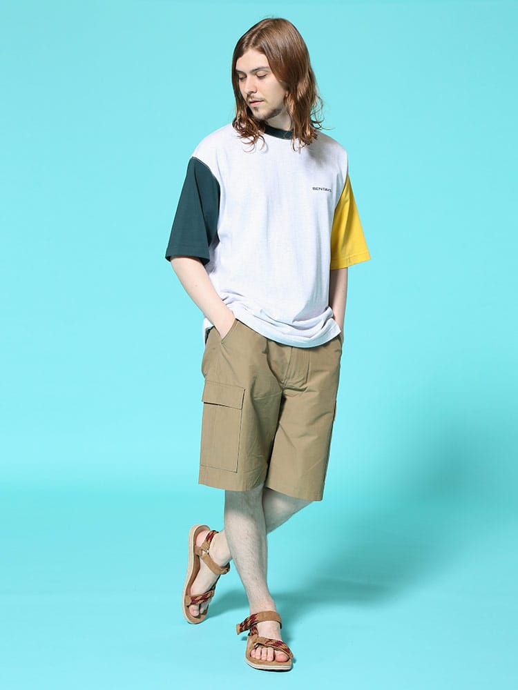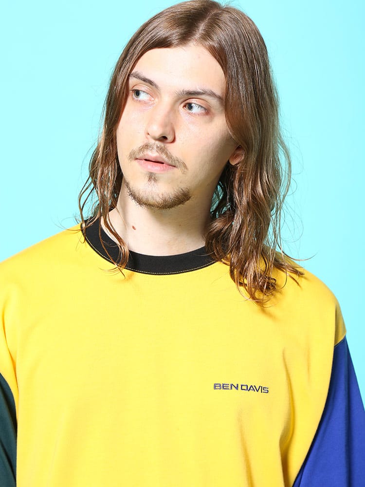 配色切り替えがお洒落なBEN DAVISのワンポイント クルーネック 半袖 Tシャツ。左胸のロゴ刺繍がポイント。首元はベーシックなクルーネックデザイン。ゆったりとしたオーバーサイズシルエット。肌触りの良いコットン生地を使用し、着心地抜群です。
