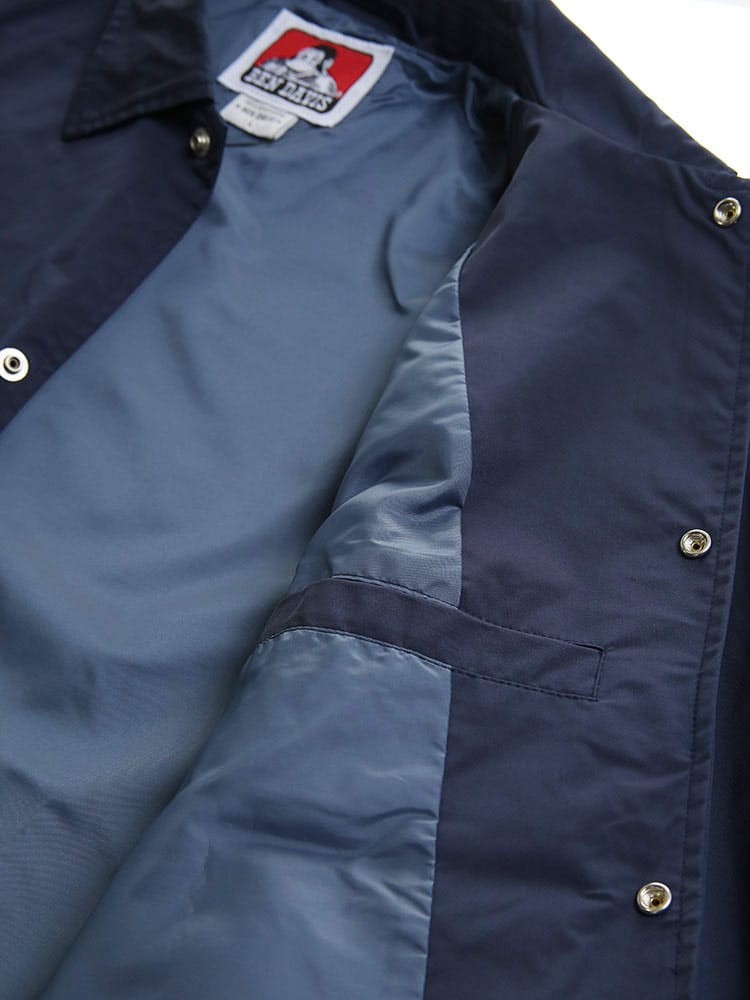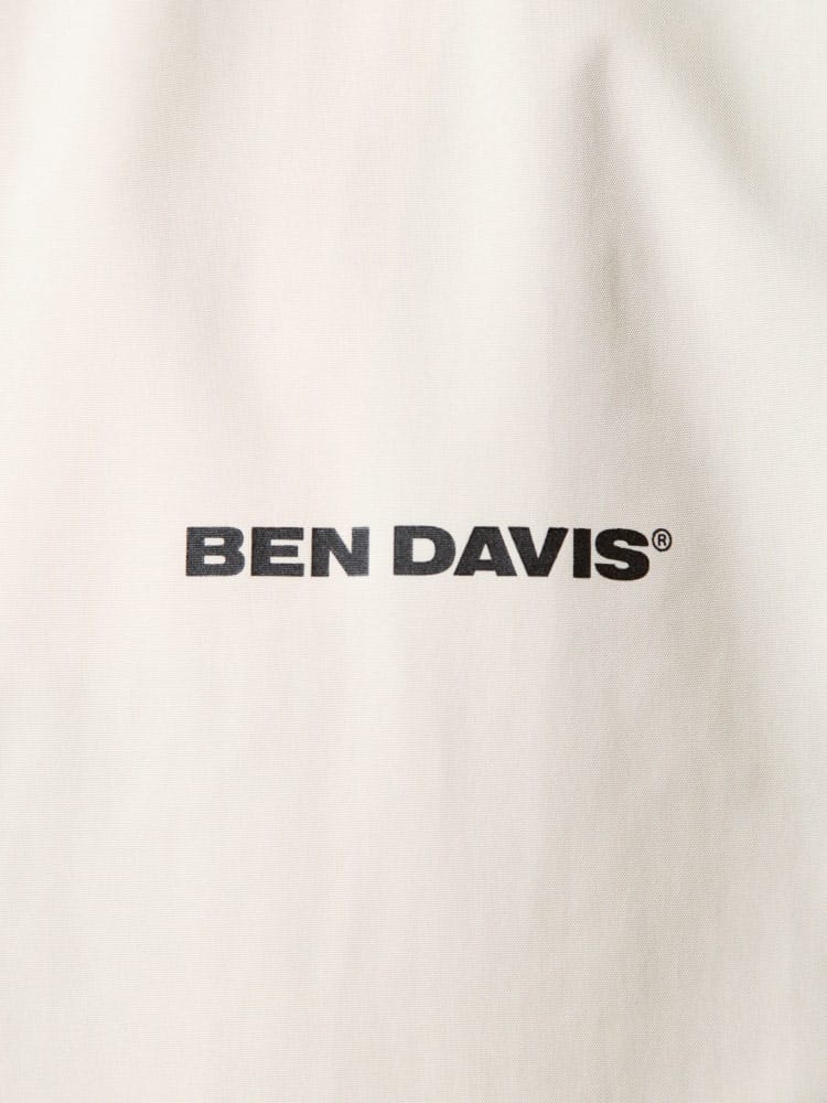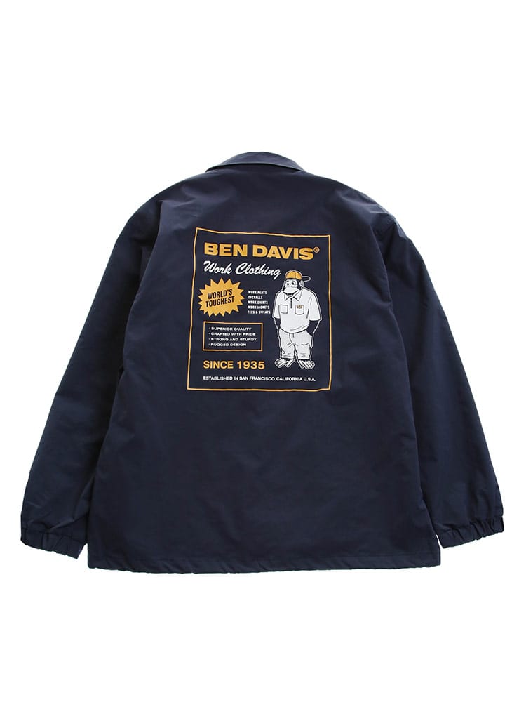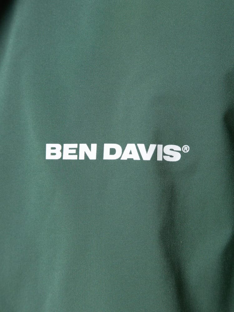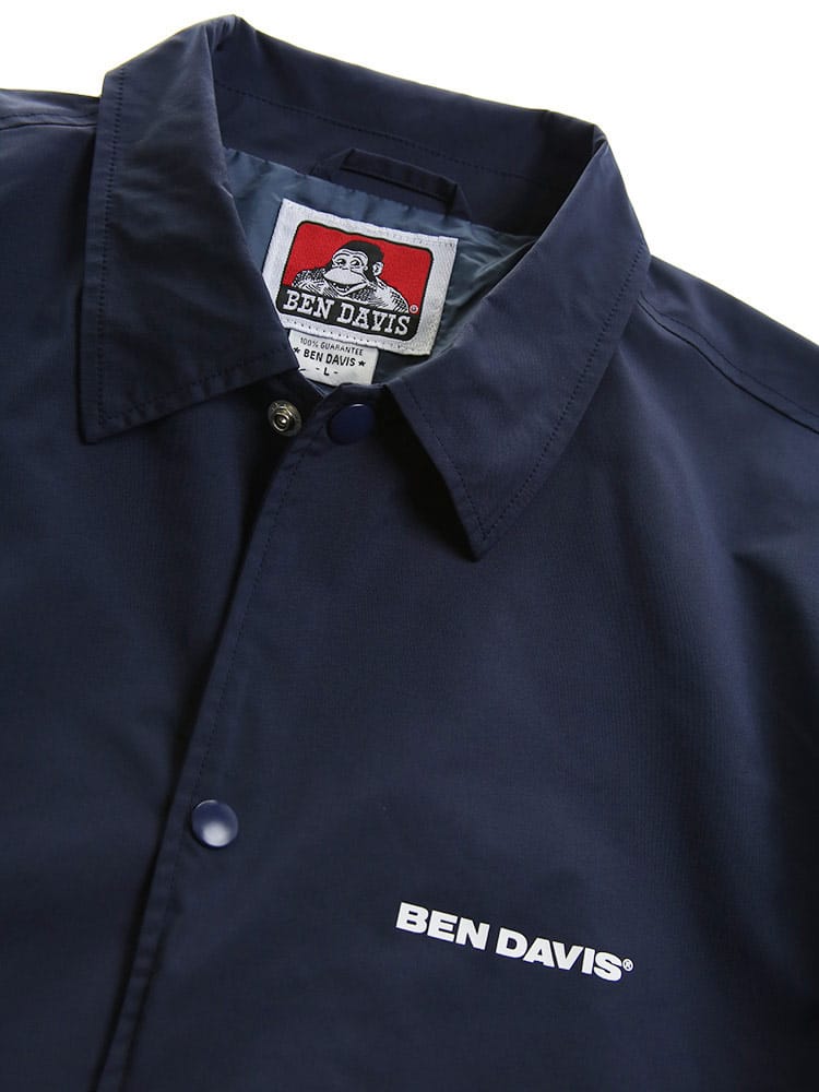 バックにゴリラアイコンをプリントしたBEN DAVISのフルボタン コーチジャケットです。左胸のロゴプリントもポイントです。左裾にブランドタグ付き。裾はドローコード付きでサイズ調整出来ます。カジュアルやストリートスタイルにおすすめの一着です。