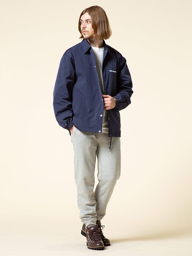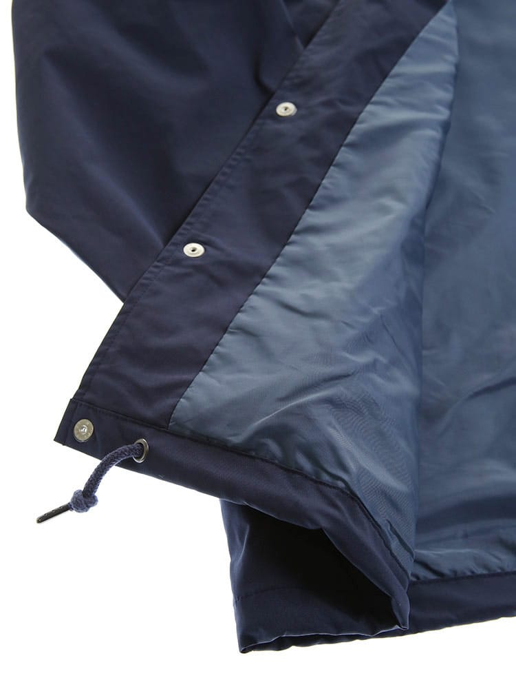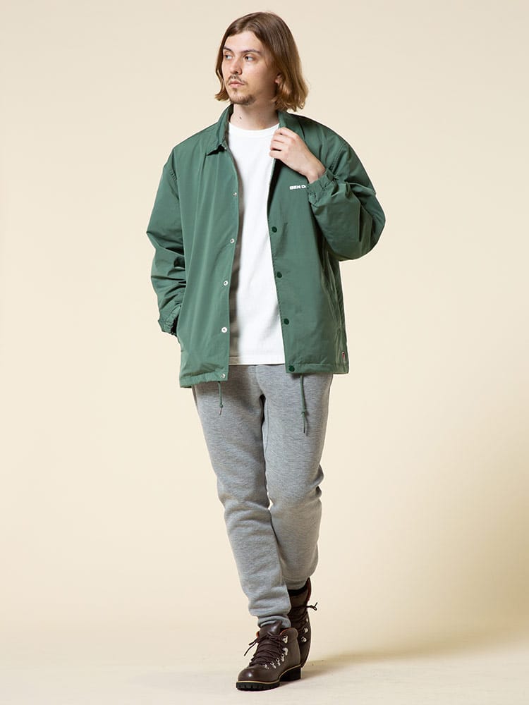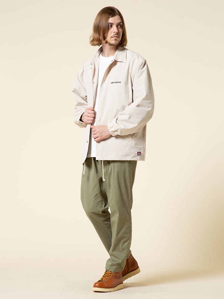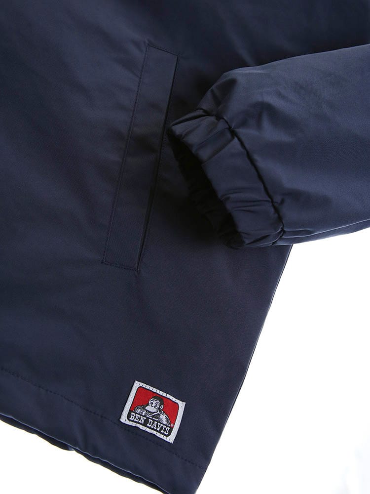 バックにゴリラアイコンをプリントしたBEN DAVISのフルボタン コーチジャケットです。左胸のロゴプリントもポイントです。左裾にブランドタグ付き。裾はドローコード付きでサイズ調整出来ます。カジュアルやストリートスタイルにおすすめの一着です。