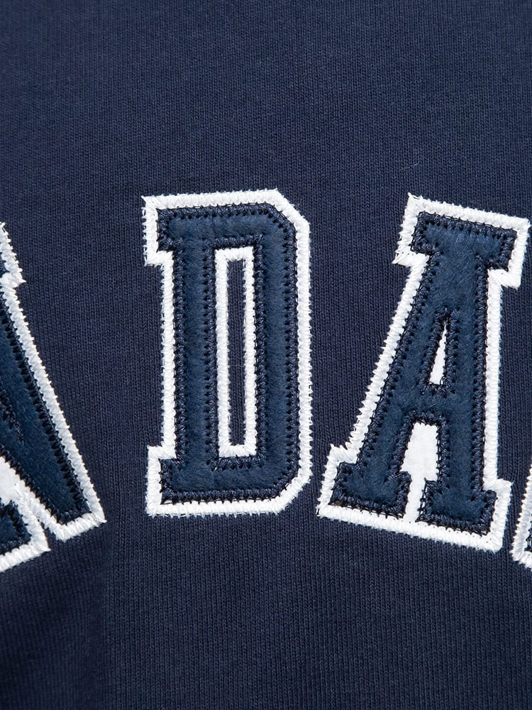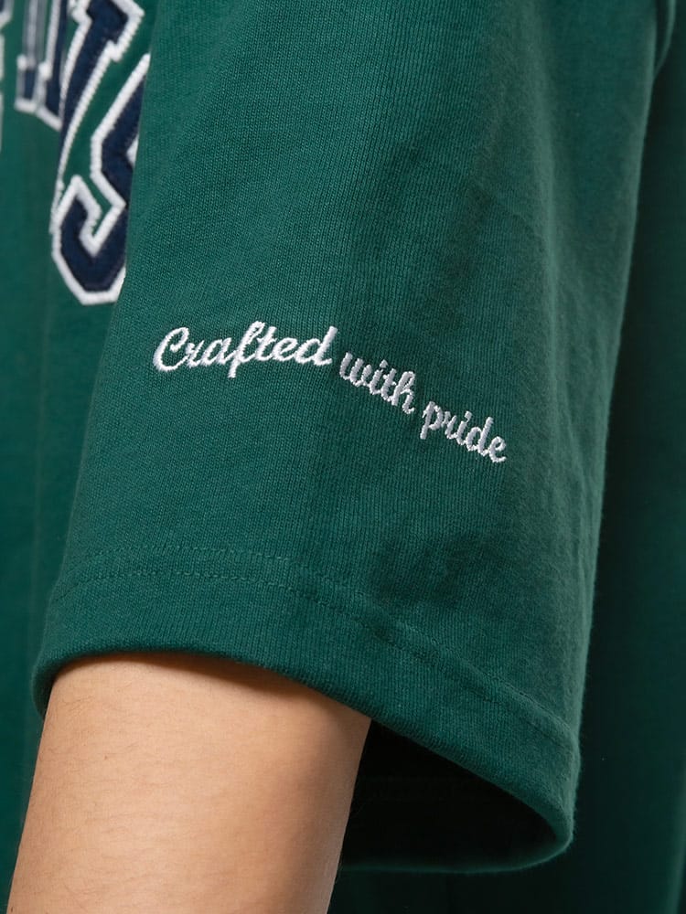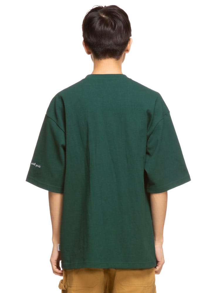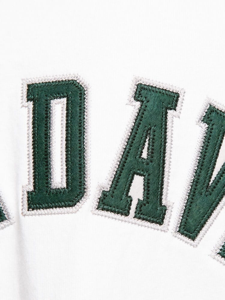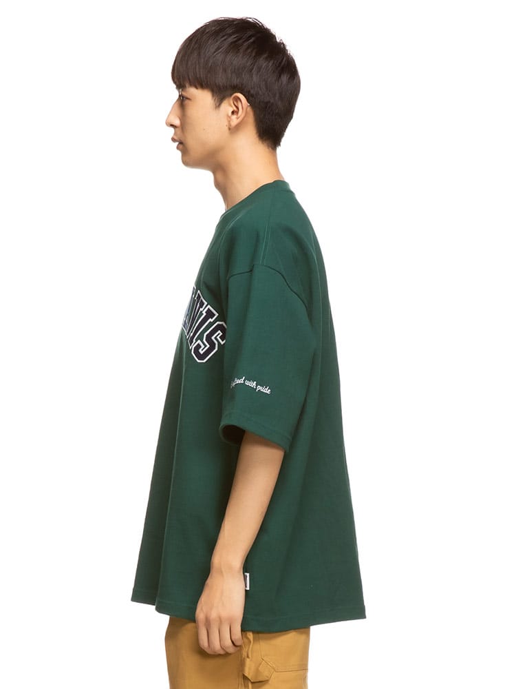 立体的なカレッジロゴ刺繍が雰囲気抜群なBEN DAVISのクルーネック 半袖 Tシャツ COLLEGE LOGO UH TEE。左袖のロゴ刺繍もポイント。トレンドのオーバーサイズシルエット。袖は肘くらいまであるのでストリートな着こなしにおすすめのアイテム。首元はベーシックなクルーネックデザイン。左裾にブランドタグ付き。生地には、しっかりとしたコットン生地を使用し、ガシガシ着ていただけます。