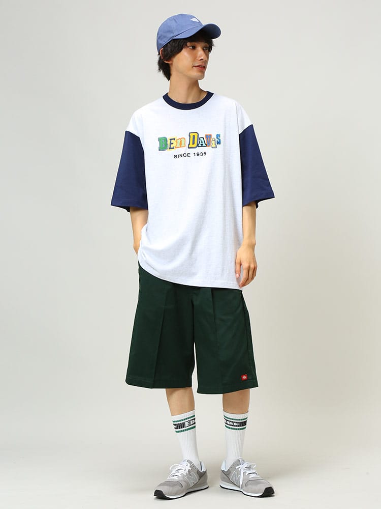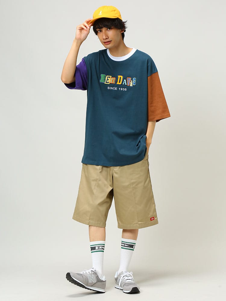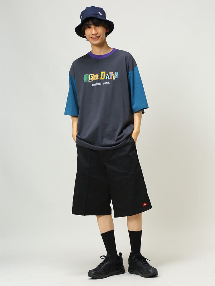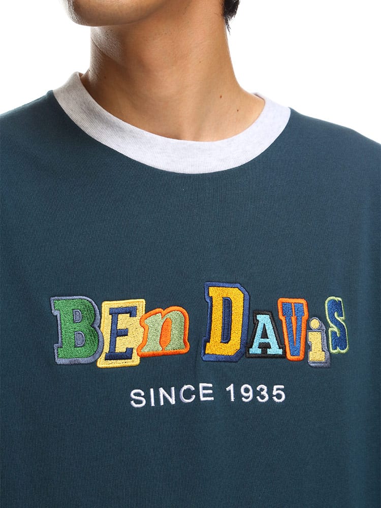 ポップな配色のロゴデザイン配色切り替えのカラーリングが特徴的な、BEN DAVISのクルーネック 半袖 Tシャツ CRAZY TWICE TEE。トレンドのオーバーサイズシルエット。袖は肘くらいまであるのでストリートな着こなしにおすすめのアイテム。首元はベーシックなクルーネックデザイン。左裾にブランドタグ付き。生地には、肌触りの良いコットン生地を使用しています。