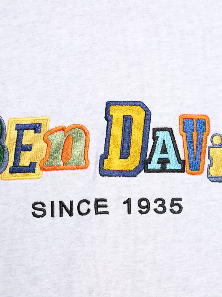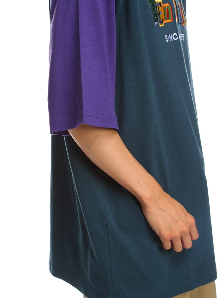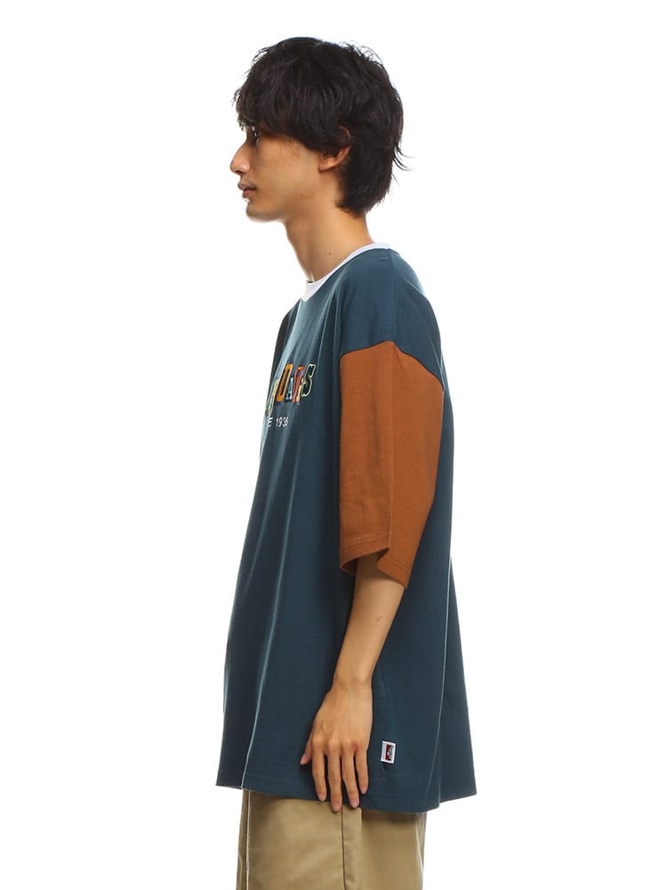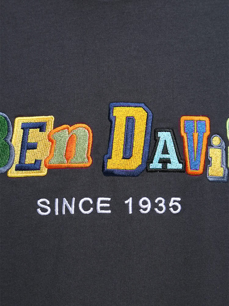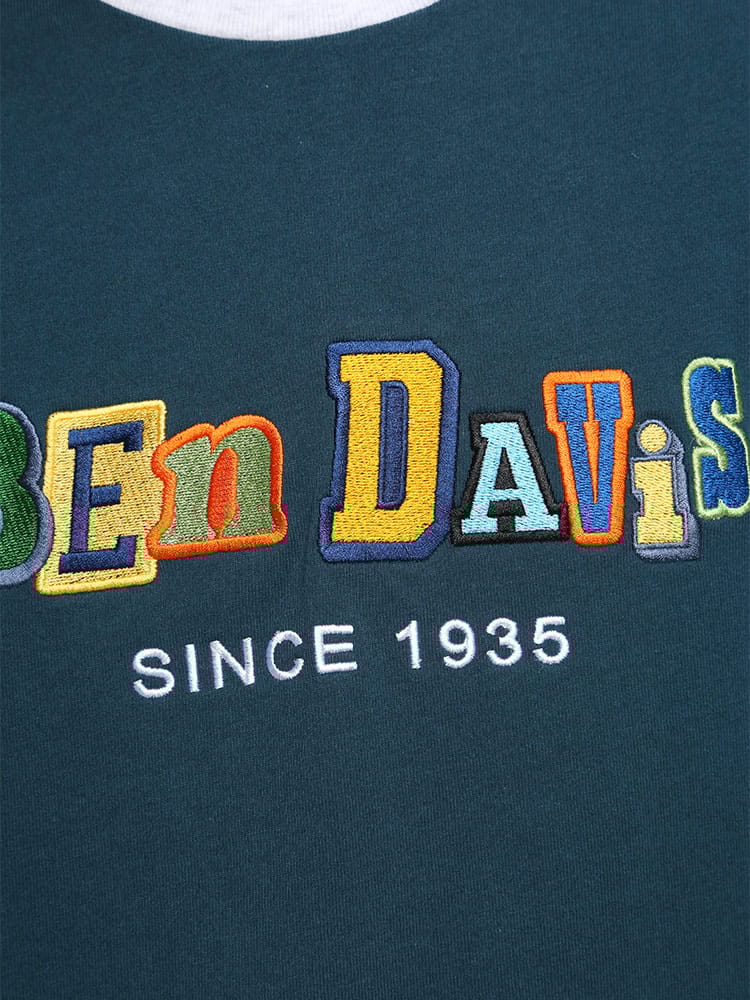 ポップな配色のロゴデザイン配色切り替えのカラーリングが特徴的な、BEN DAVISのクルーネック 半袖 Tシャツ CRAZY TWICE TEE。トレンドのオーバーサイズシルエット。袖は肘くらいまであるのでストリートな着こなしにおすすめのアイテム。首元はベーシックなクルーネックデザイン。左裾にブランドタグ付き。生地には、肌触りの良いコットン生地を使用しています。