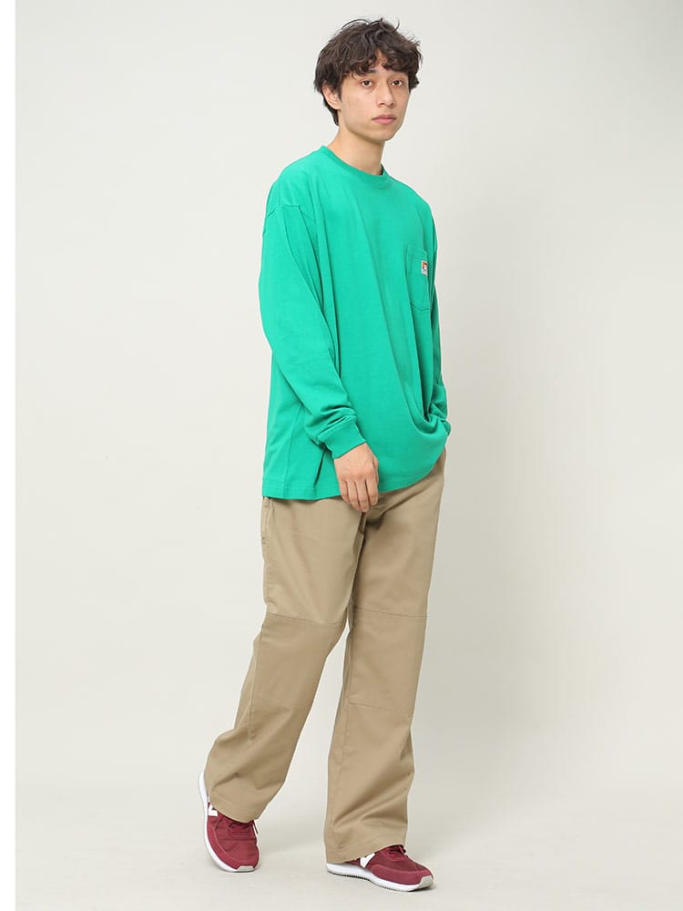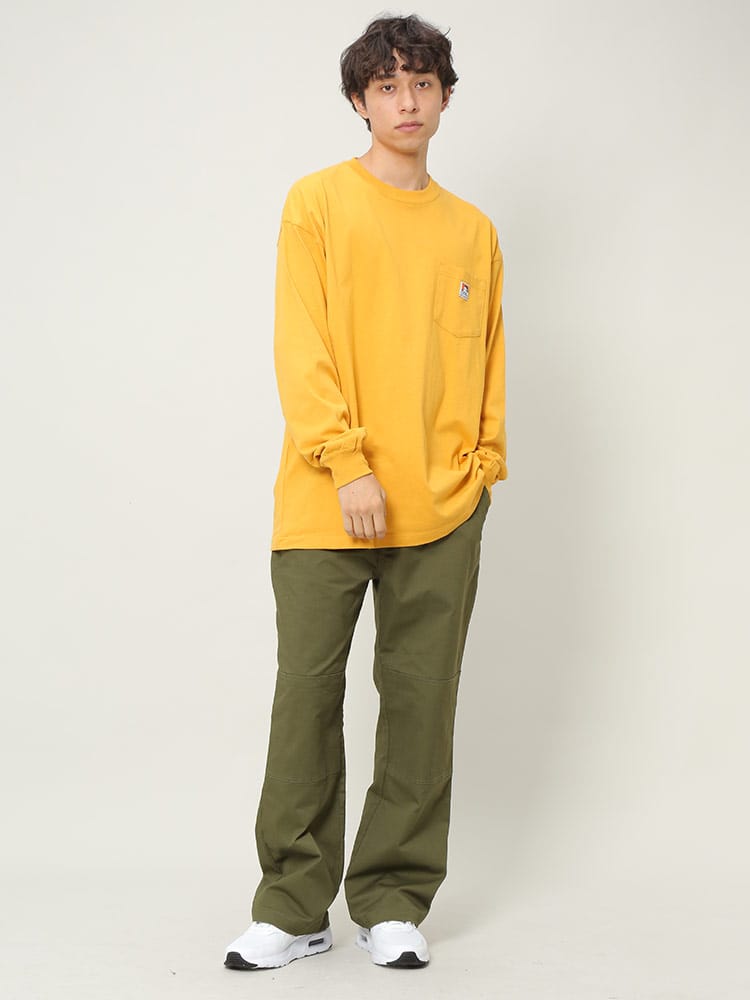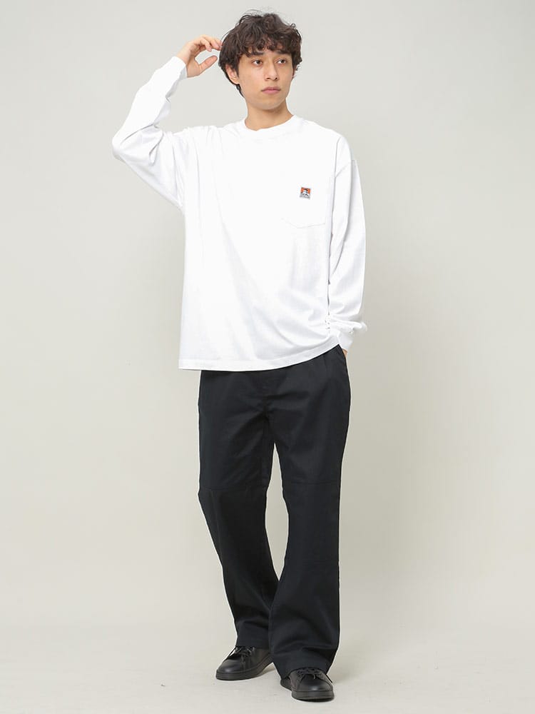 着心地の良いコットン100%の素材感とトレンドのワイドシルエットが魅力のBEN DAVISの長袖Tシャツです。シンプルで飽きの来ないデザインで様々なコーディネートで活躍してくれるデザイン。胸ポケットに施されたロゴがワンポイントに。