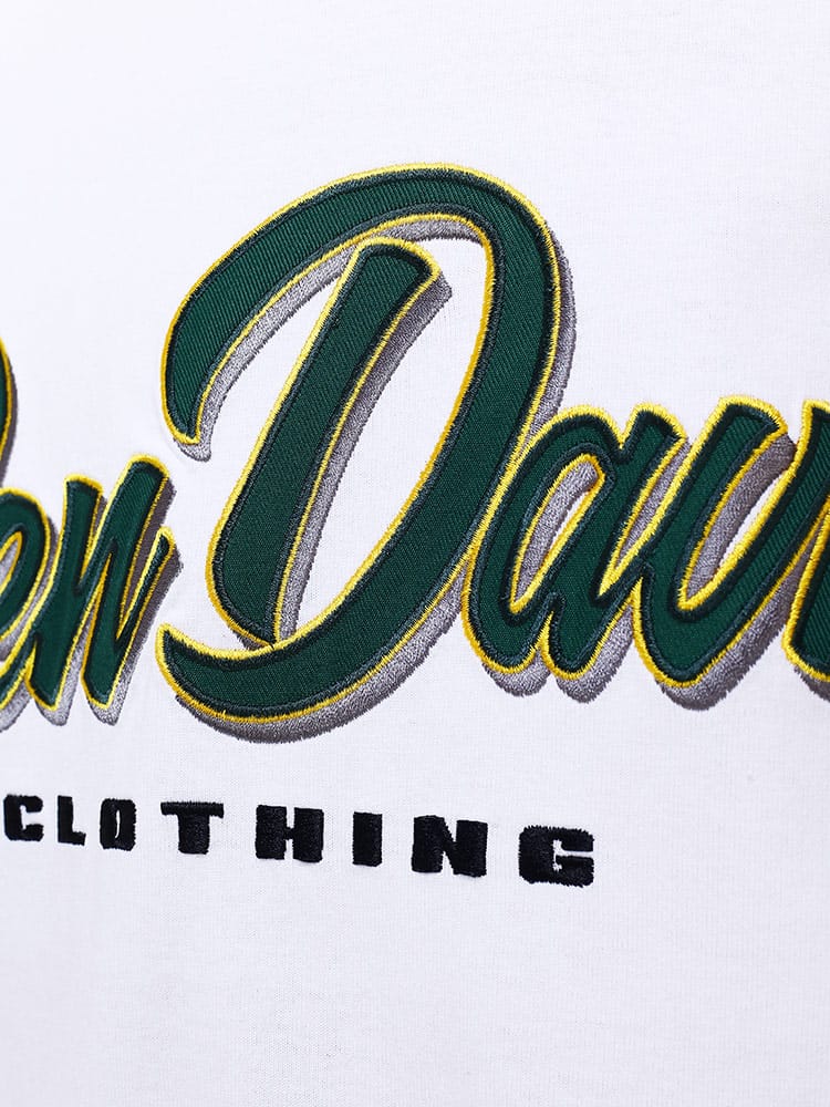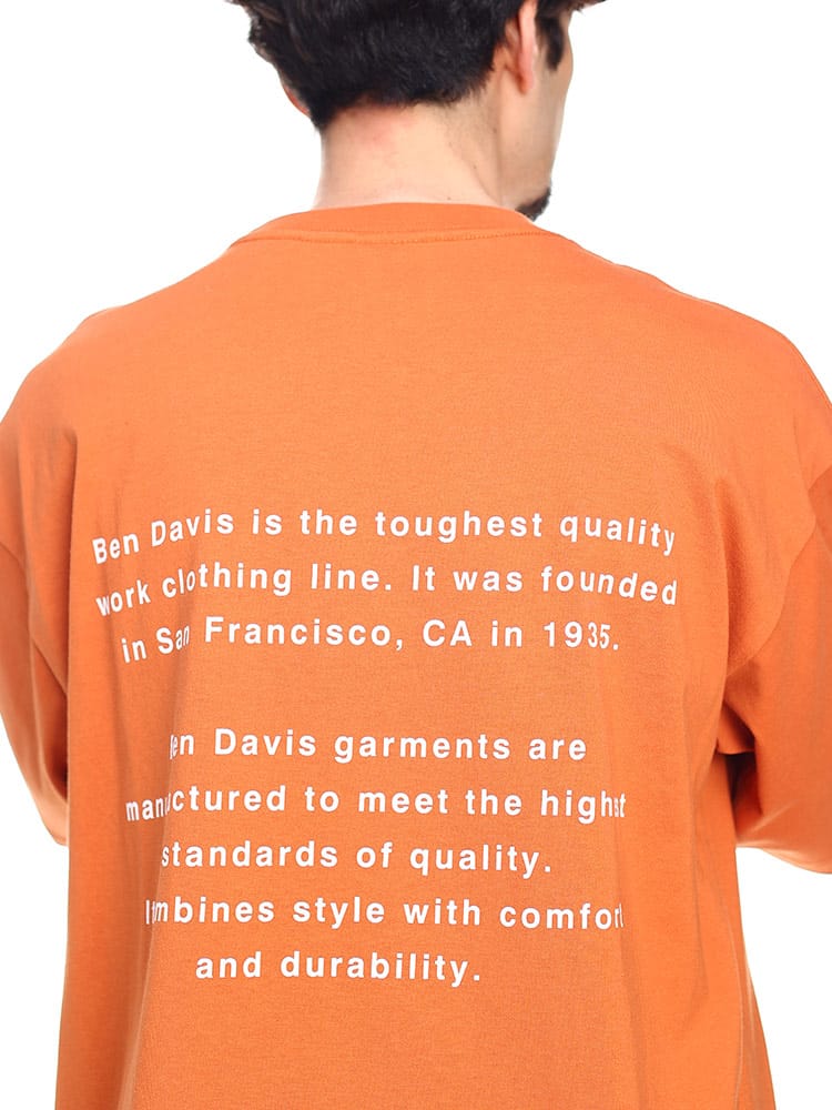 ベンデイビスのロゴ刺繍 クルーネック 半袖 Tシャツです。フロントに、配されたロゴ刺繍がインパクト大。背面にはメッセージプリントが施された、カジュアルさのあるデザインとなっています。オーバーサイズでトレンドの着こなしから、ジャストサイズでスマートな着こなしまで、色々なコーディネートにマッチする一着です。