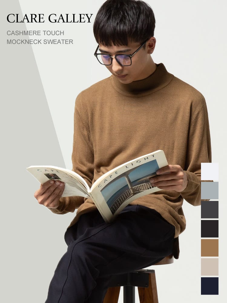 カシミヤタッチの滑らかな肌触りのモックネック ニット セーターです。カシミヤの柔らかい素材感で、着心地の良さを感じられる仕上がり。無地で、使いやすく着回しがききます。ジャケットのインナーとしても、シャツに合わせても、上品さをプラスしてくれます。袖、裾はリブ。スタンダードなアイテムでどんなスタイルにも取り入れていただけます。