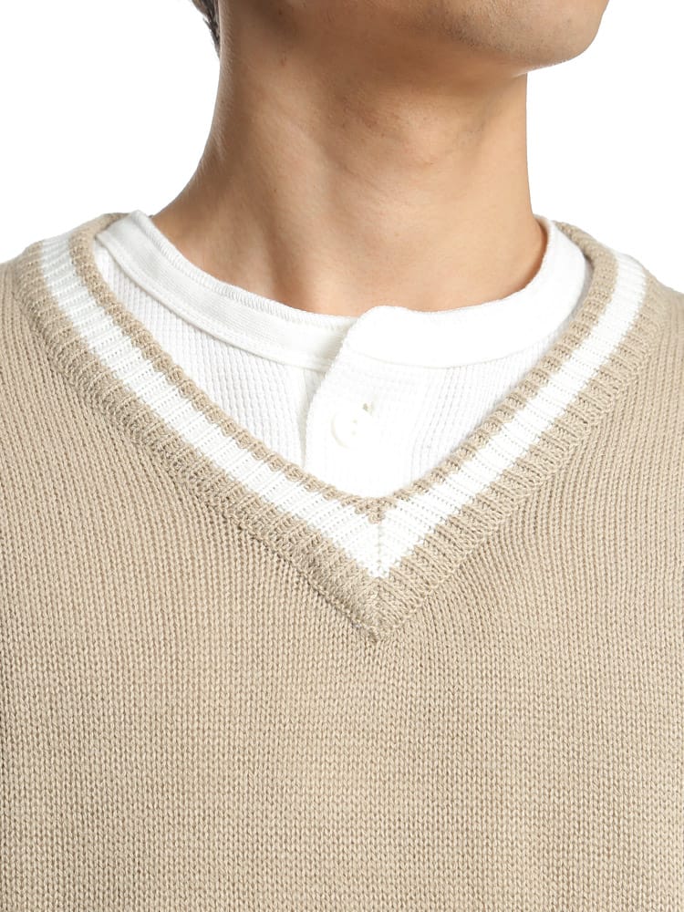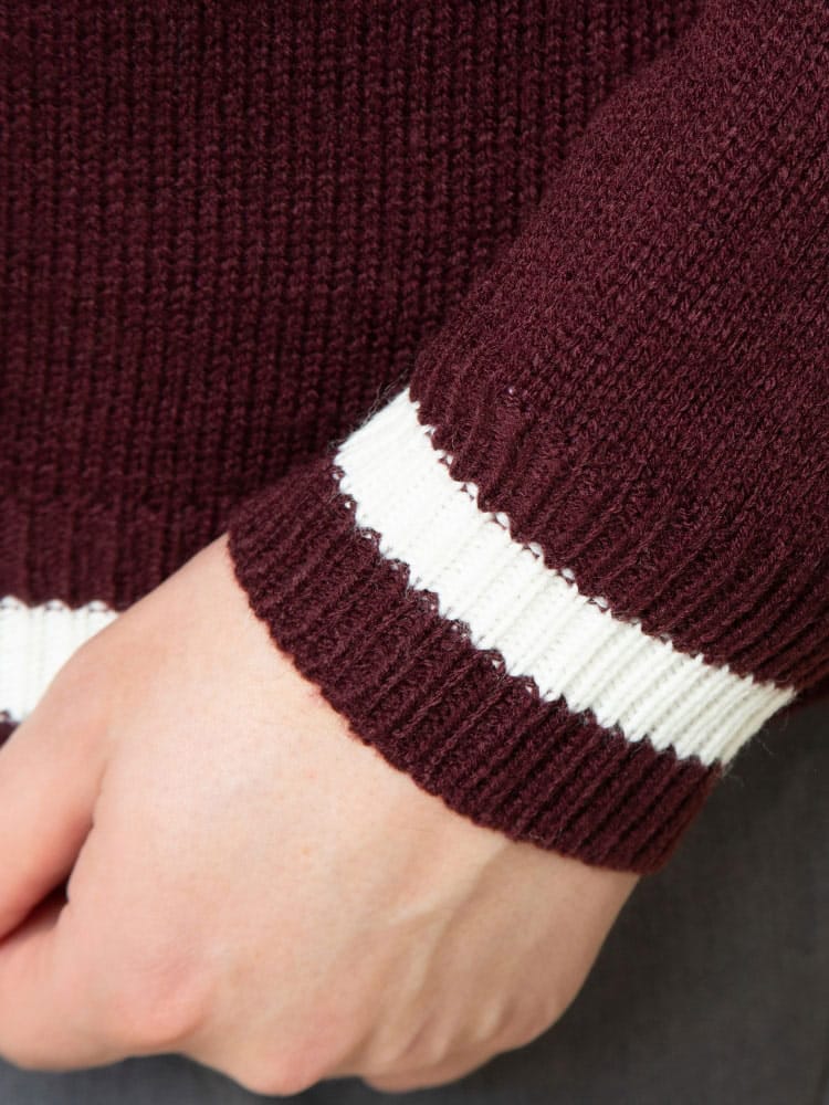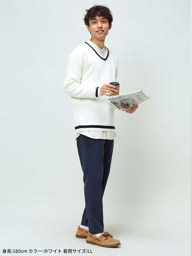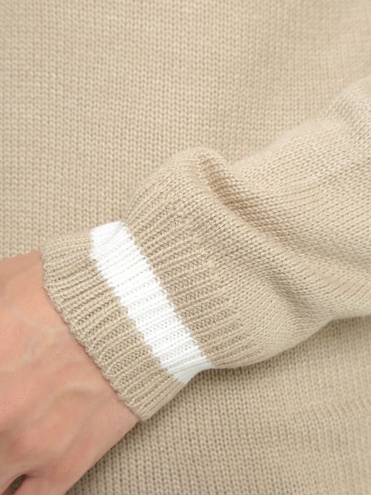 使いやすく流行りに左右されないデザインが人気のチルデンニット。チクチクしない優しい肌触りで、ストレッチが効いていて動きやすい仕上がり。ご家庭での洗濯も可能です(ネット使用)。着回し力抜群で、ネックと袖、裾にラインがアクセントになってくれます。秋のアウター使いから冬の防寒着までと、重宝する肉感で仕上げています。幅広いシーンやコーディネイトでの活躍が楽しみなアイテムです。