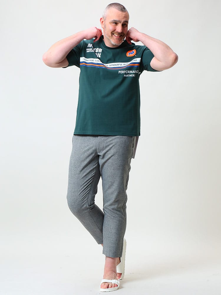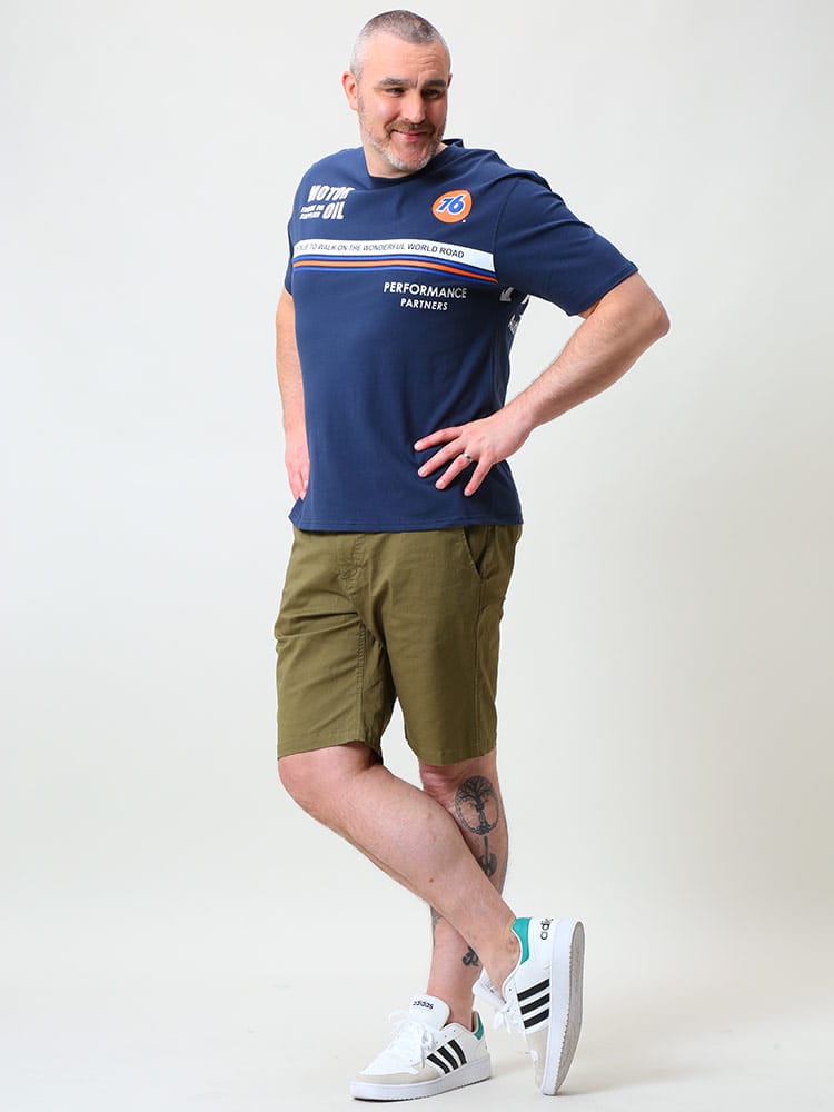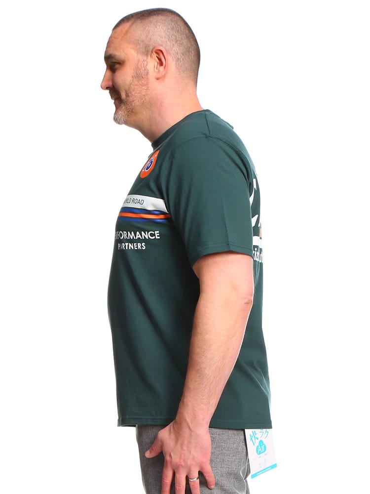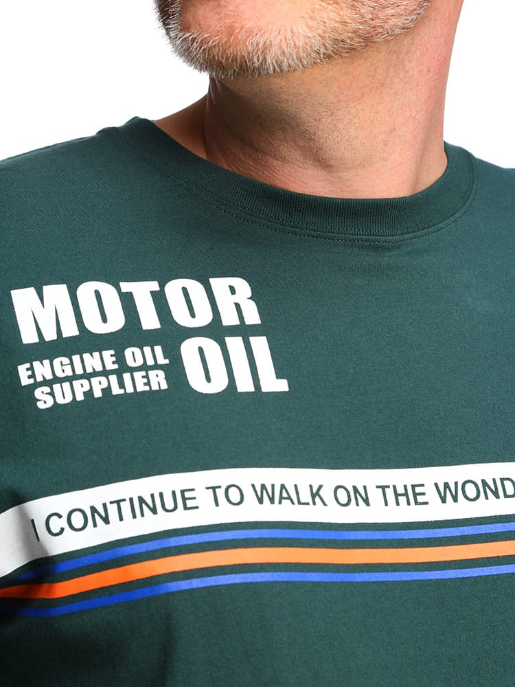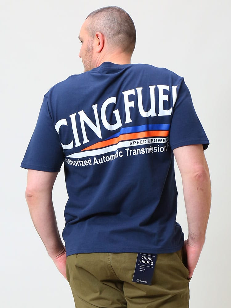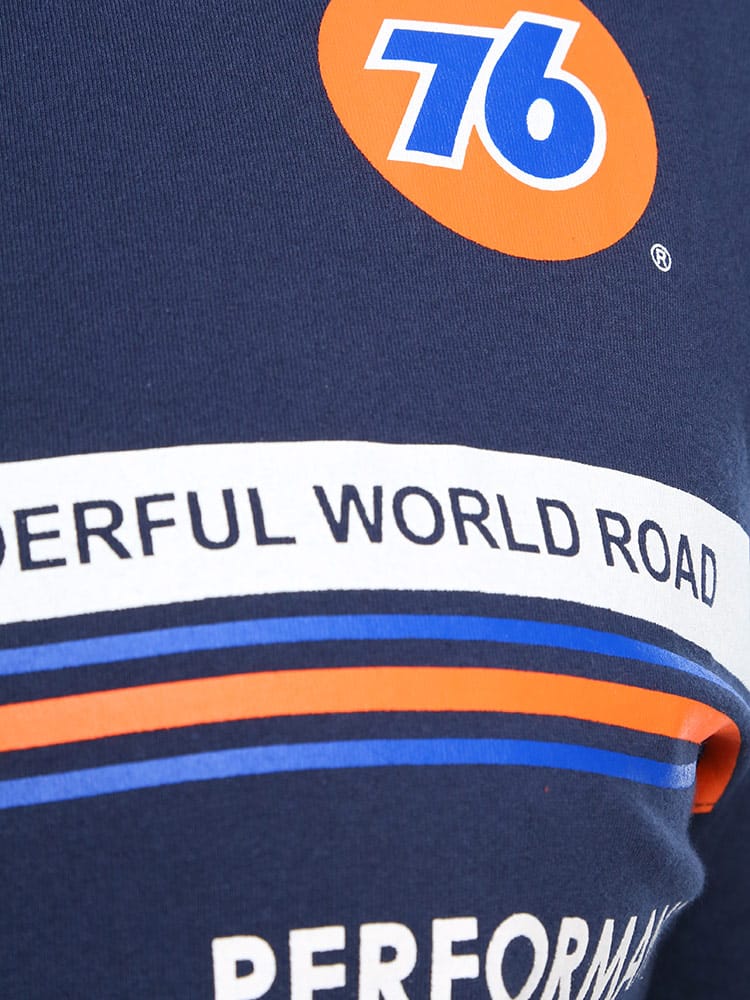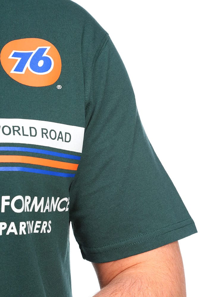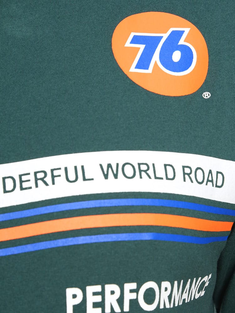 76 LUBRICANTSのクルーネック半袖 Tシャツです。フロントとバックのプリントデザインが目を引く一枚。首元はベーシックなクルーネックデザイン。しっかりとしたコットン生地を使用。アメカジスタイルやストリートスタイルにおすすめの一枚です。