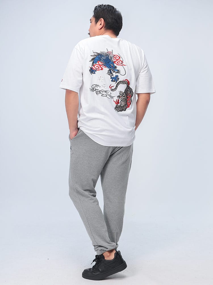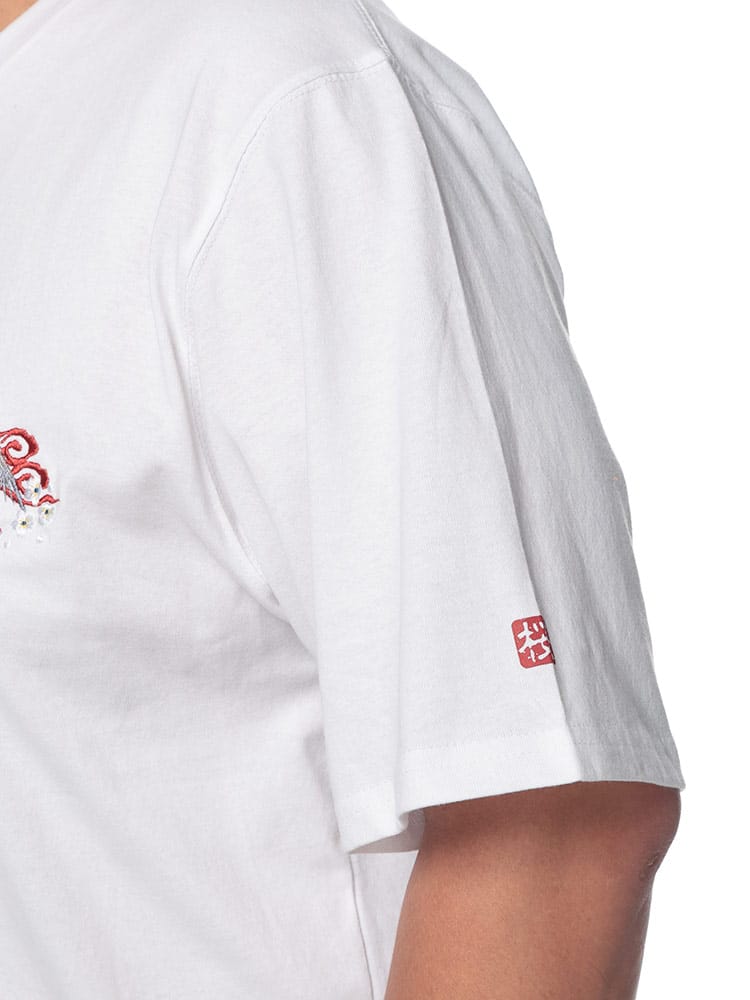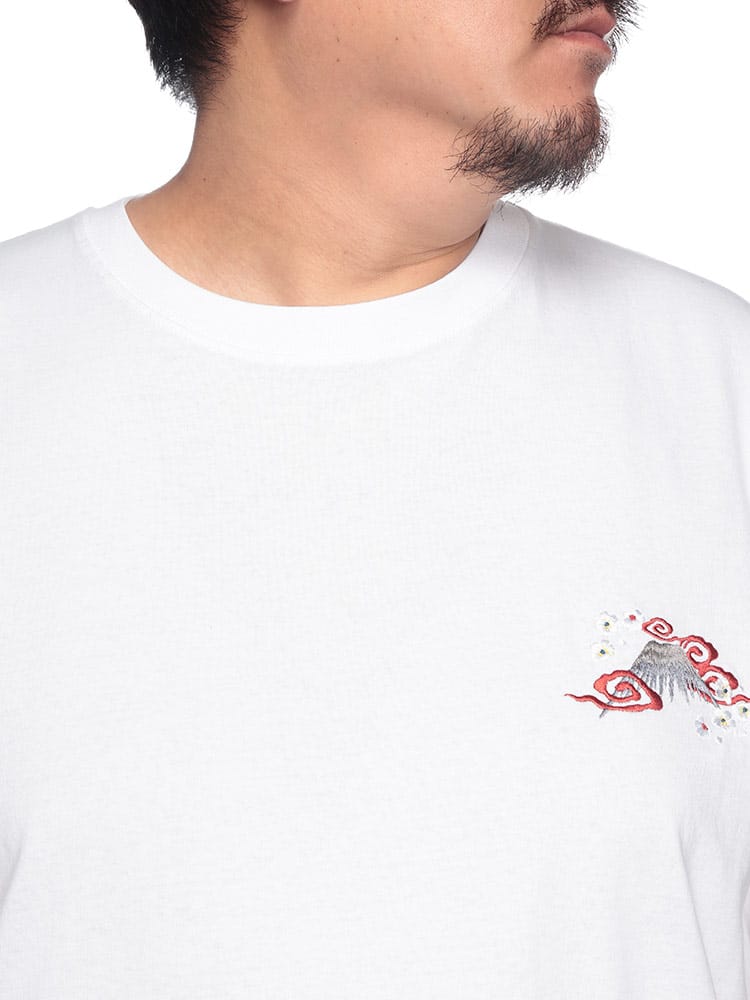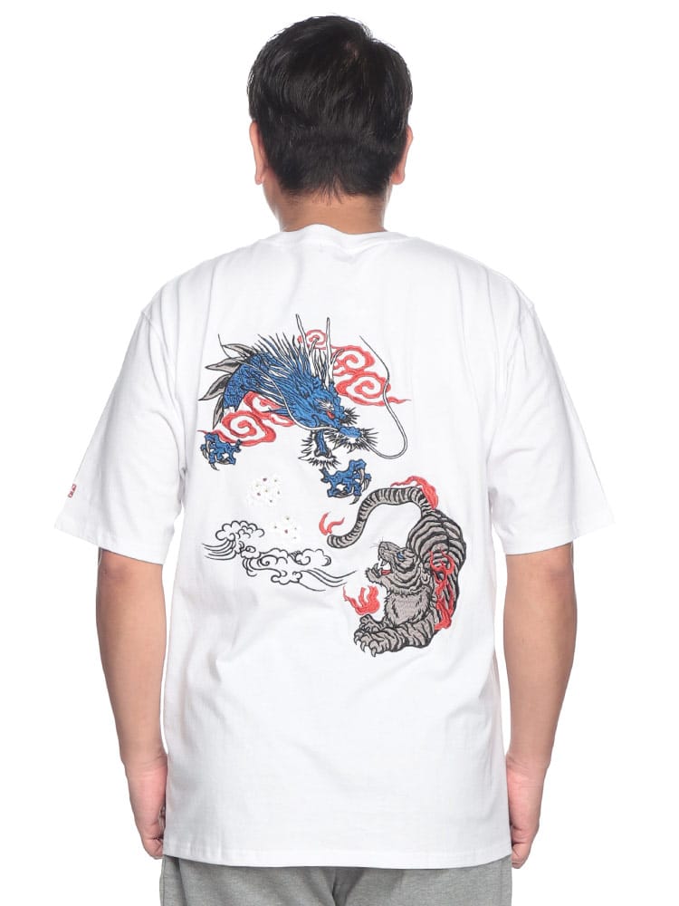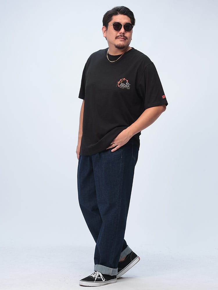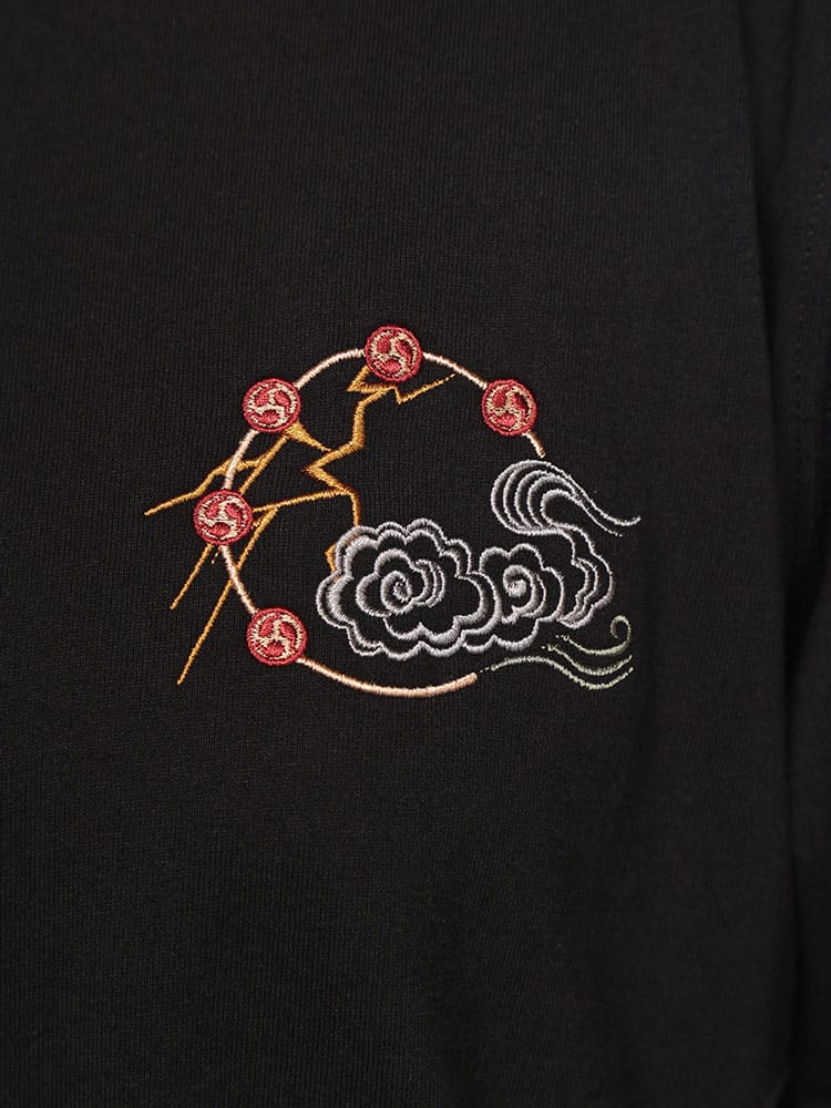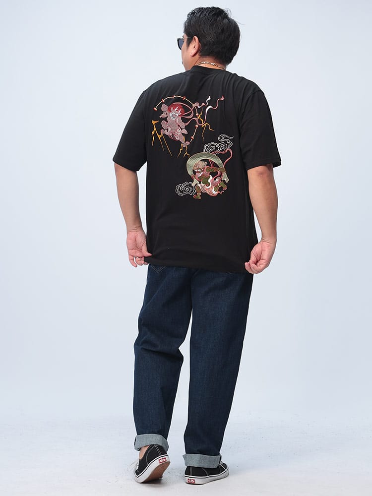 Contribeの和柄刺繍半袖Tシャツは、背中に迫力ある風神と雷神の刺繍が施された和風デザインのTシャツです。細部までこだわった美しい刺繍が特徴で、個性的なスタイルを演出します。カジュアルな半袖Tシャツながら、伝統的な和柄が存在感を放つ一枚です。
