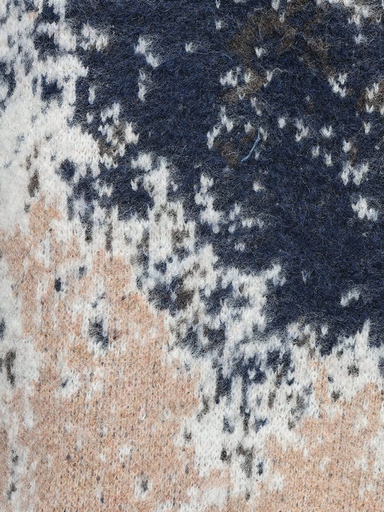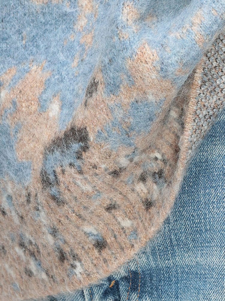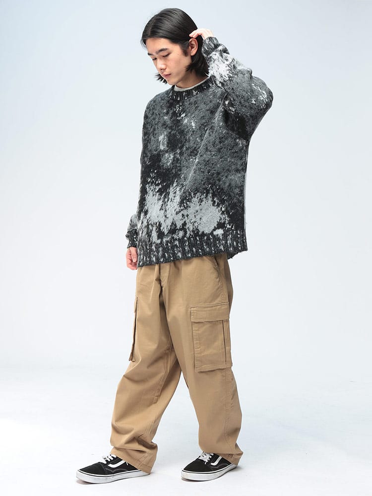 アートを纏う、アブストラクト柄ニット。単なるニットではない、Cathy's Closetが提案する着るアート。複雑で美しいアブストラクト柄(抽象柄)が、クラシックなクルーネックニットにモダンな感性を吹き込みました。計算された配色とパターンが、コーディネートの主役として圧倒的な存在感を放ちます。ウール混のふっくらとした編み地は、見た目にも温かく、肌寒い季節に心地よい暖かさを提供。程よい厚みと柔らかな風合いで、一枚でもインナーとしても、快適な着心地が持続します。このニット一枚で、デニムやスラックスなどのベーシックなボトムスも、一気にハイセンスな装いへと変貌。周りと差をつける、洗練された大人の感性を表現したいあなたへ贈ります。