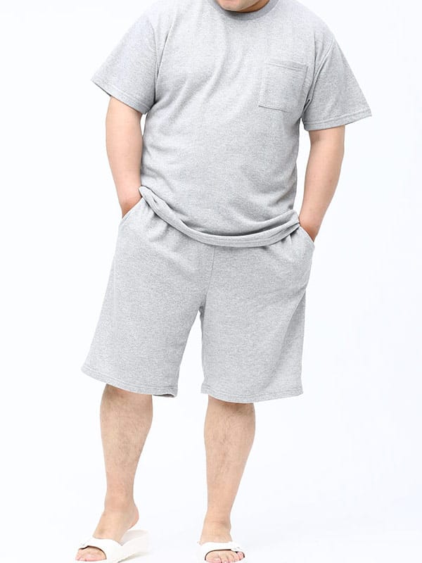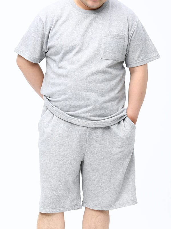 柔らかな風合いを感じられる無地Tとショートパンツのセットアップ。柔らかなスウェット生地を採用ししっかりとした作りながら、肌触りのいい着心地にこだわり仕上げてます。杢がかった表面で無地ながらオシャレなさりげないアクセントになっています。胸ポケット、2つのパンツポケットを完備し使いやすさも兼ね備えています。普段使いから、少しオシャレな部屋着としても使えるオススメアイテムです。