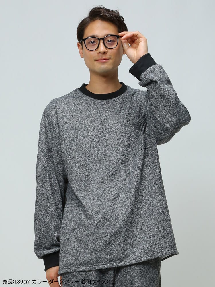 16ゲージで仕上げたクルーネック トレーナーとロングパンツのセットアップです。袖、裾はリブデザイン。パンツのウエストはゴムとドローコード付きでサイズ調整出来ます。裏地は裏毛でサラッとしています。リラックス感のあるアイテムでルームウェアにおすすのアイテムです。
