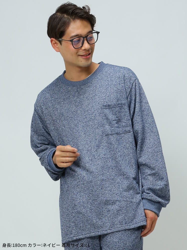 仕様 :トップスポケット×1つ / クルーネック / パンツポケット×2つ / ウエスト調節ゴム / 前閉じ / 裏毛