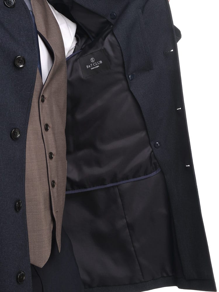 裏面ラミネート加工を施したダウンライナー ボタン コートです。取り外しが出来る保温性抜群のダウンライナー付きでロングシーズンご着用いただけます。襟ベルト付きで首元の冷気もシャットアウト。バックサイドにサイズを調整出来るベルト付き。ベーシックなデザインでビジネスシーンにおすすめです。
