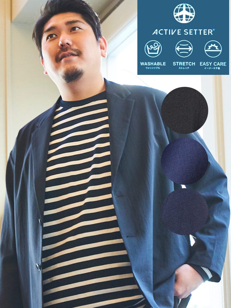 大きいサイズ メンズ B&T CLUB 春夏 ウォッシャブル ストレッチ イージーケア 無地 シングル ジャケット セットアップ対応