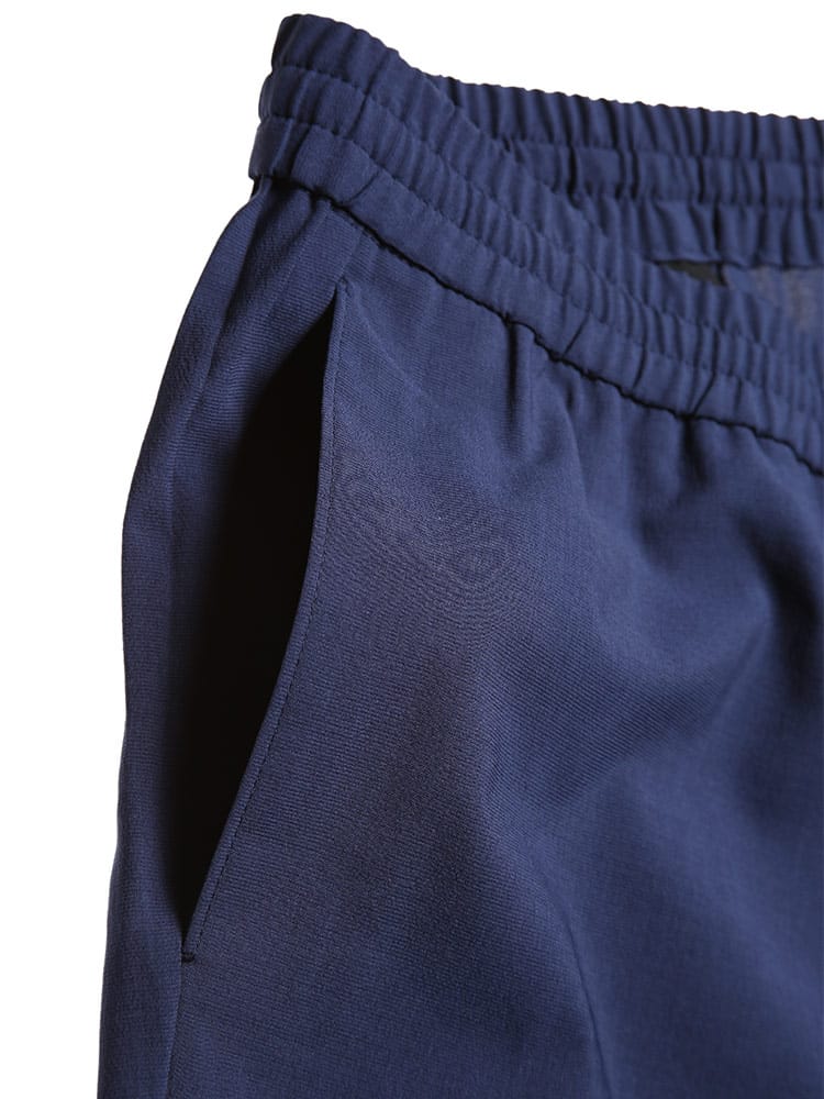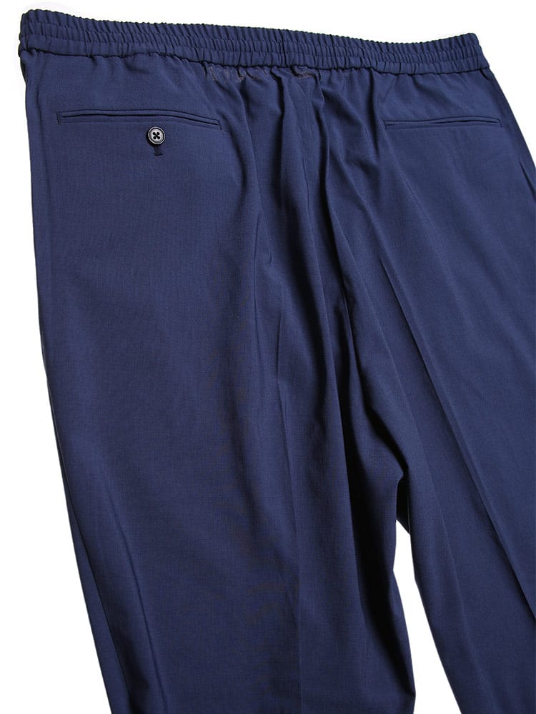 快適な着用感を提供する機能が付いたストレッチ イージーケア ウエストゴム 無地 パンツです。ウォッシャブル、ストレッチ、イージーケア性でお手入れも簡単。上品でナチュラルな表面感とハリ・コシのあるドレープ性で品のあるアイテム。ウエストはゴムとドロコード付きでサイズ調整出来ます。ビジネスからデイリーまで穿いていただけるアイテムです。ウエストのドローコードは外側で結ぶ他にも、パンツの内側に引くことで通常のベルトを通してスタイリングすることが可能です。