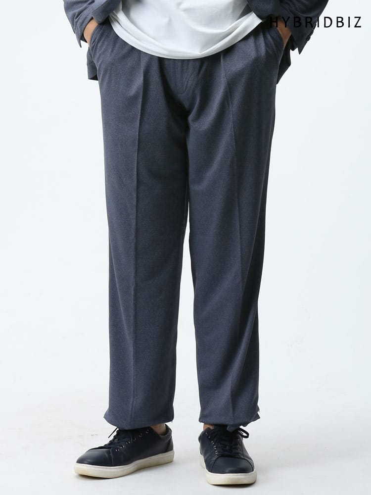 従来の商品より2倍伸びるすごいらくストレッチのメランジ ワンタック パンツです。メランジ生地を使用し、品の中にカジュアルさを演出。ワンタックデザインでゆとりのあるデザイン。ウエストはサイド部分がギャザーになっているので伸縮します。ベーシックなデザインで大人のカジュアルスタイルやジャケパンスタイルにおすすめです。ウエストのドローコードは外側で結ぶ他にも、パンツの内側に引くことで通常のベルトを通してスタイリングすることが可能です。