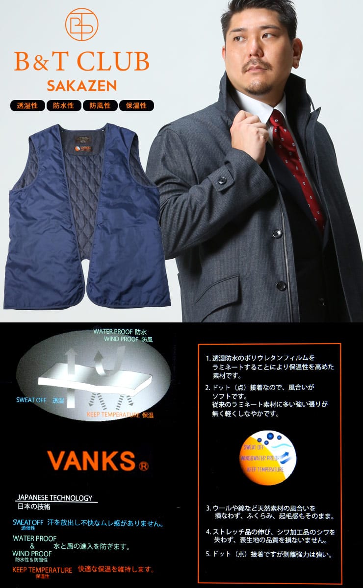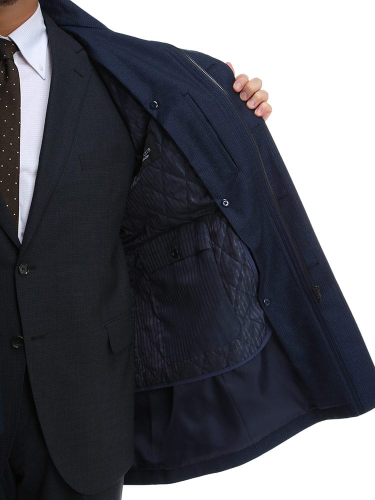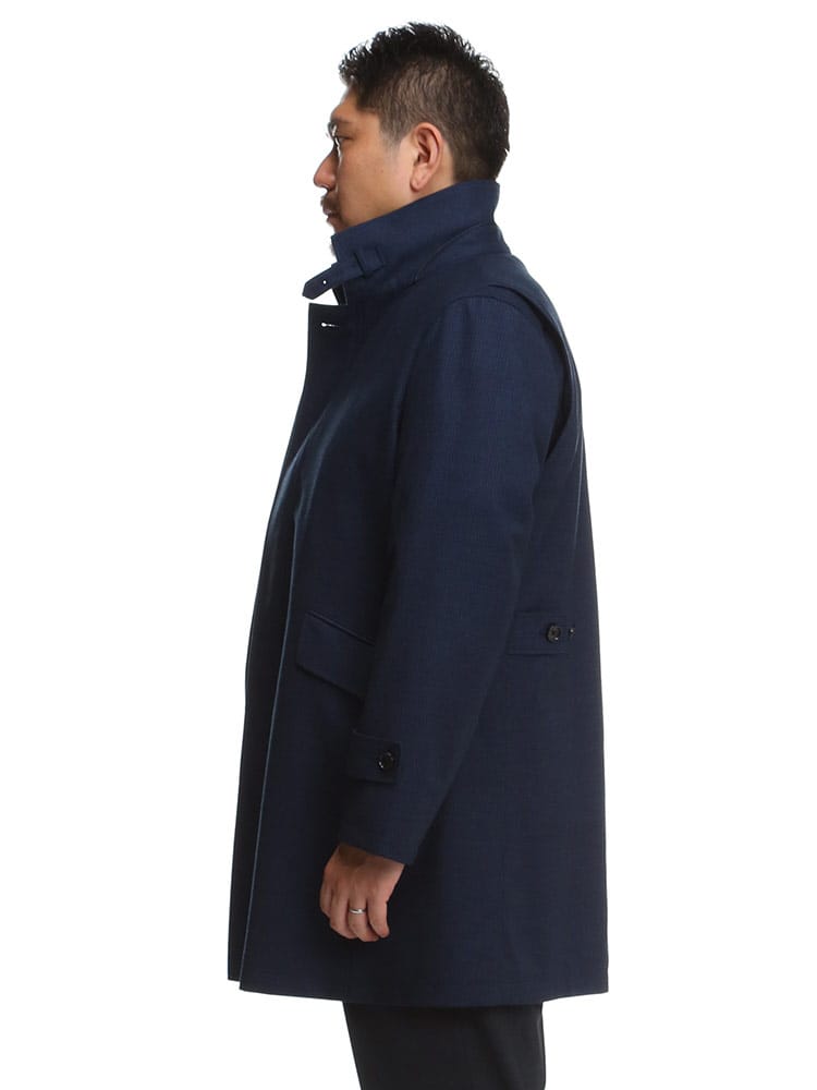 多機能素材のVANKSを採用したウール 中綿ライナー コート VANKS。ウール生地で品のあるデザイン。透湿防水のポリウレタンフィルムをラミネートすることにより保温性を高めた素材で透湿性、防水性&防風性、保温性で快適な着用感を提供します。取り外し出来る中綿ライナー付きでロングシーズンご着用いただけるのも嬉しいポイントです。バックサイドにサイズを調整出来るベルト付き。無地のベーシックなデザインでビジネスシーンに最適です。