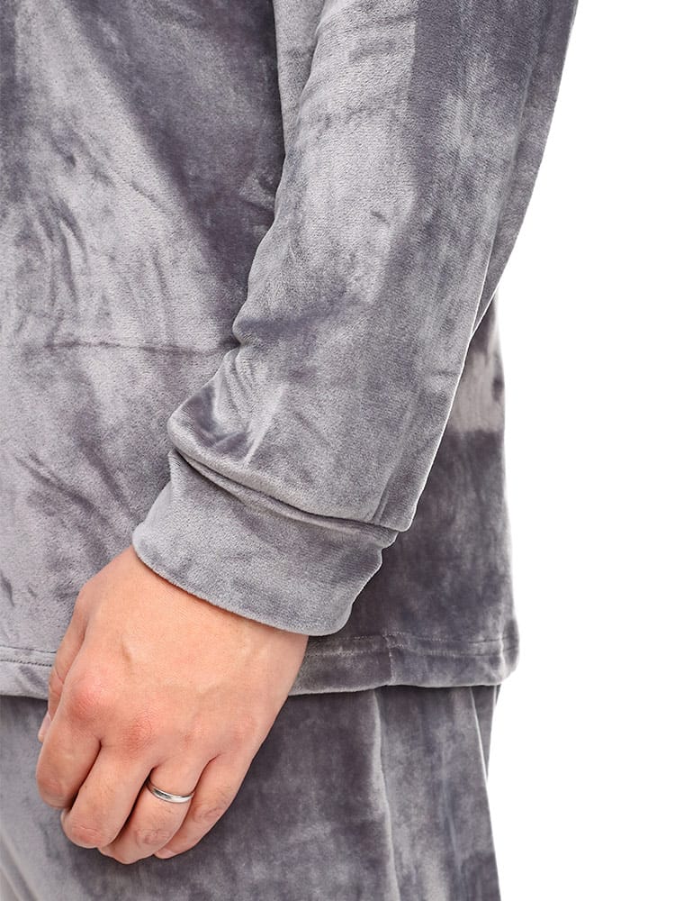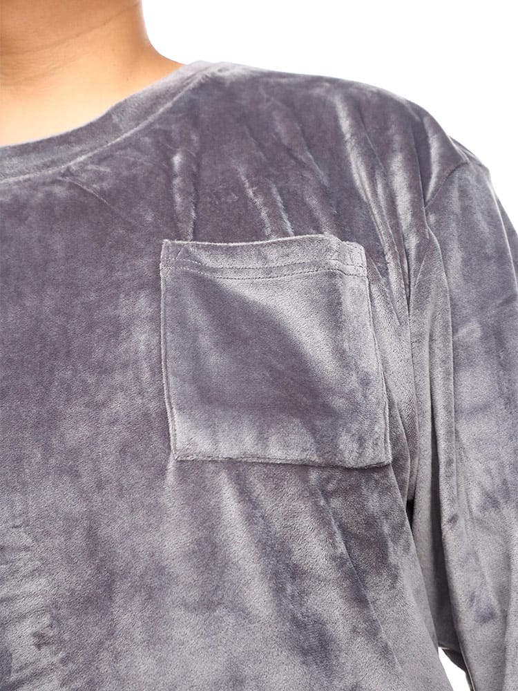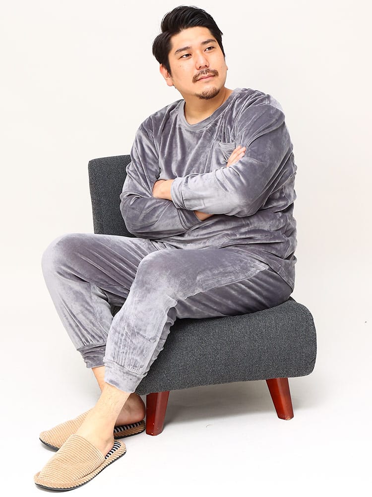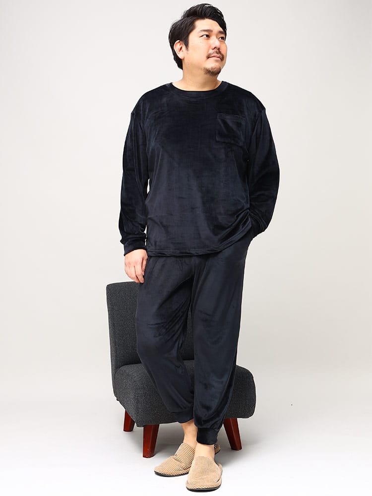 B&T CLUBのベロアクルーネックセットアップです。柔らかな肌触りのよいベロア素材のリラックスルームウェアは寒い季節のパジャマにもピッタリ。ストレッチ性もあるのでストレスフリーな着心地が楽しめます。パンツはウエストゴムとドローコード仕様で細かな調節が可能です。