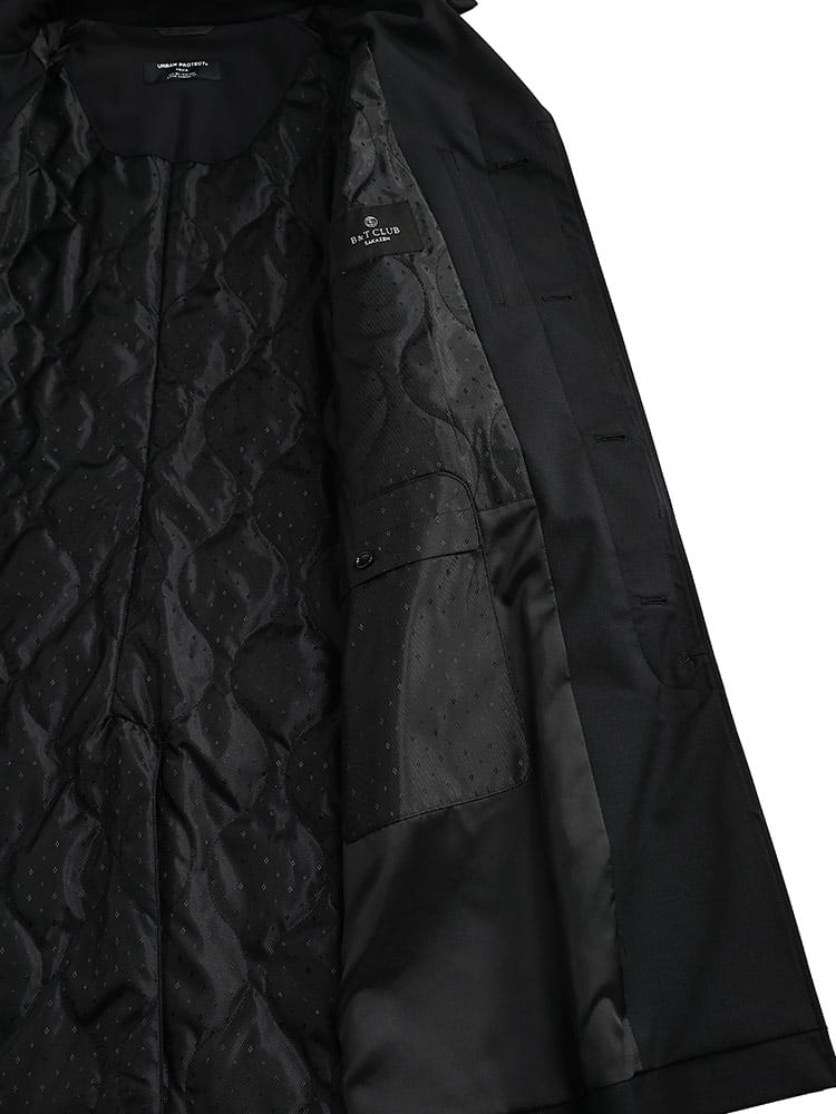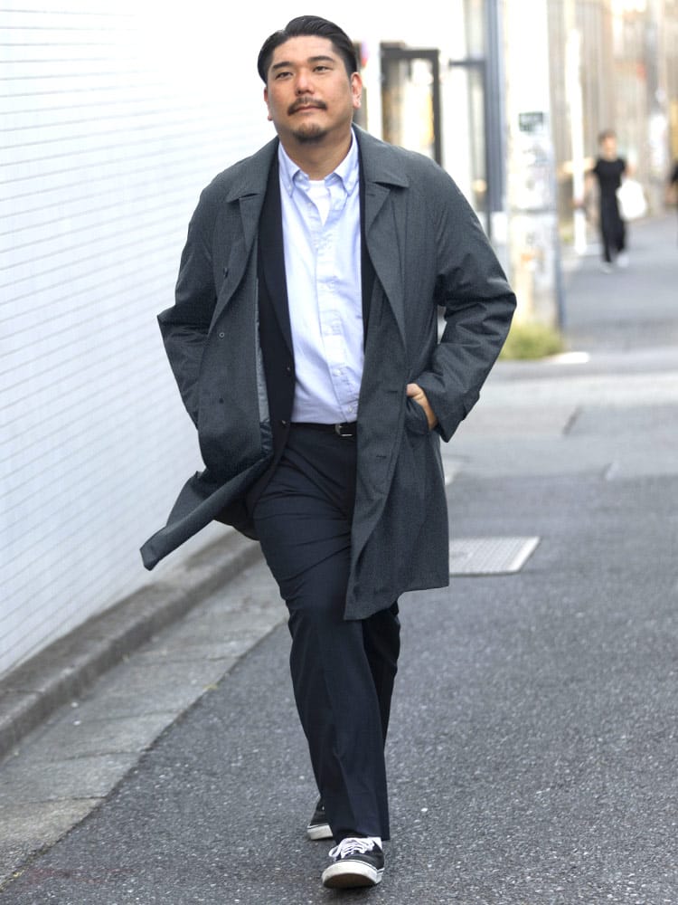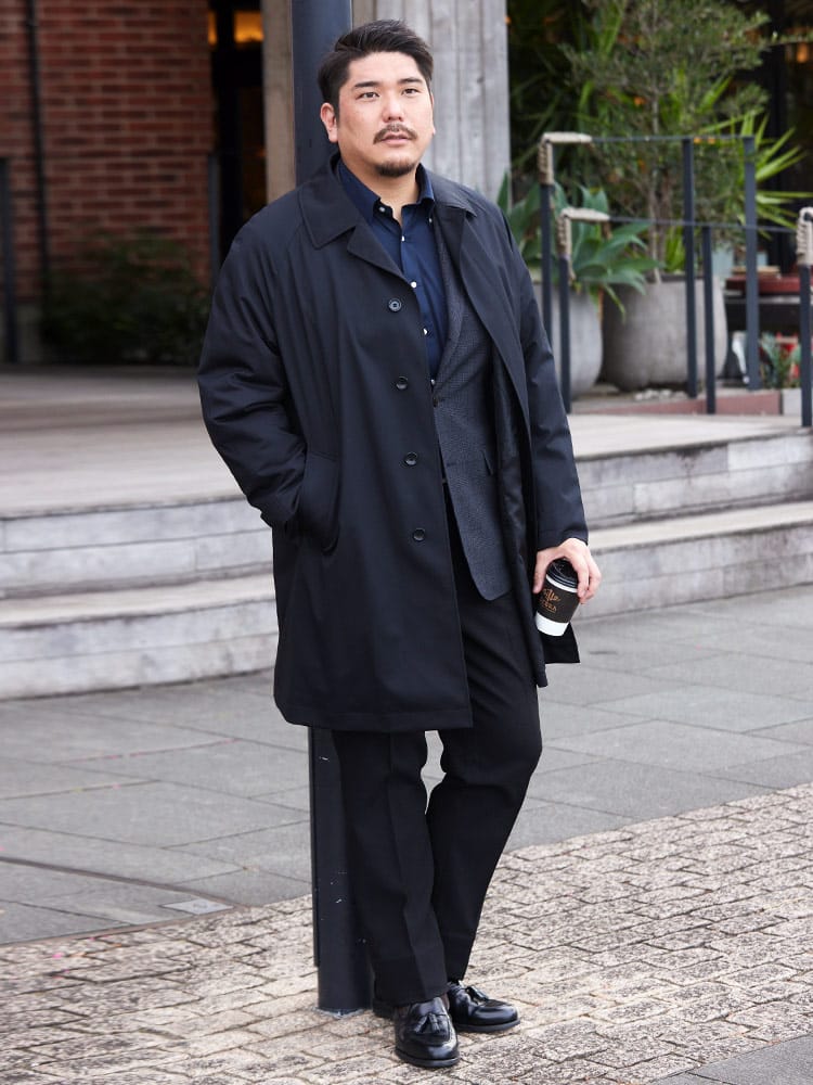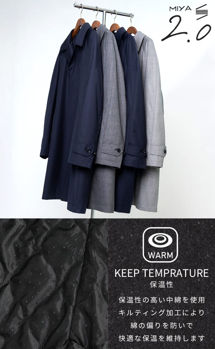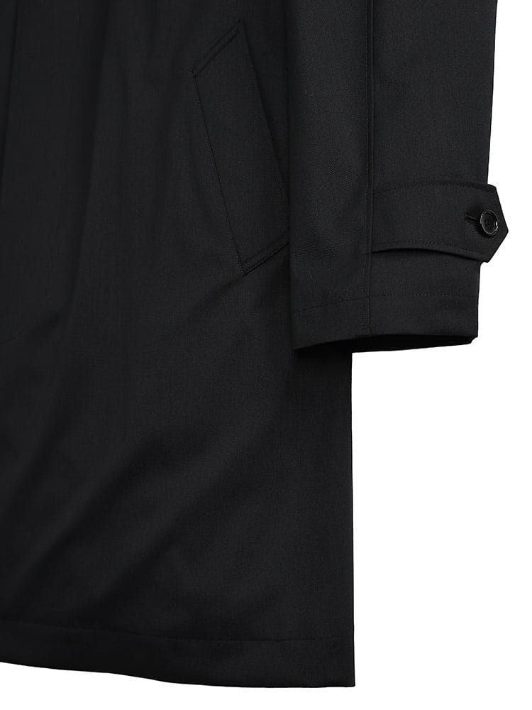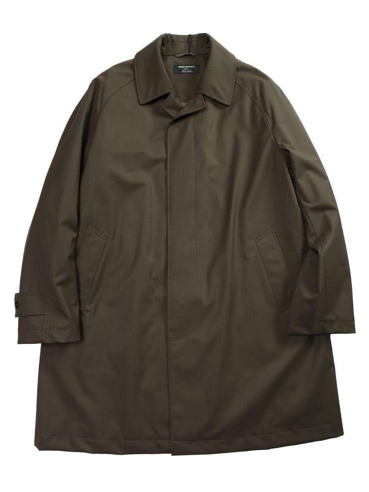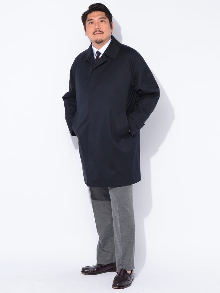 B&TCLUBのラグランステンカラーコートは、高機能素材「MIYA」を使用しています。複数の層を重ねて作られ、優れた防風・防水性能を持つストレッチコートです。動きやすさを重視しながら、シンプルで洗練されたデザインが特徴。軽量で快適な着心地を提供し、ビジネスシーンからカジュアルまで幅広い場面で活躍します。高機能とスタイルを両立した、実用的かつファッショナブルなコートです。