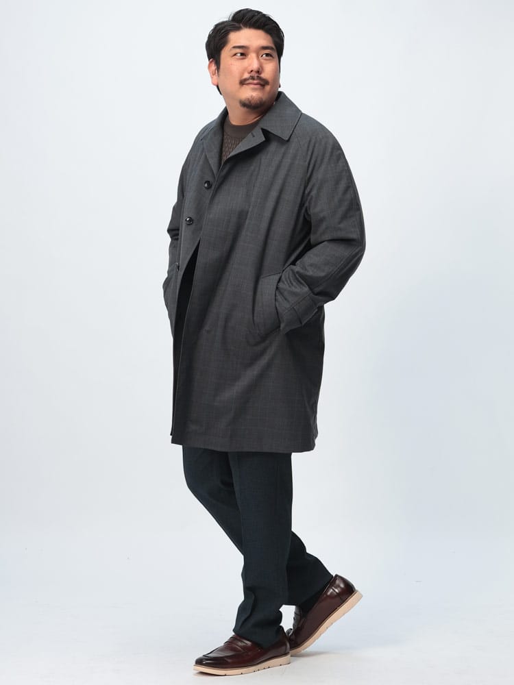 B&TCLUBのDRAGOステンカラーコートは、高機能素材「MIYA」を使用した防風・防水に優れた一着です。イタリアの高級生地メーカーDRAGOの素材を採用し、上質で洗練されたデザインが特徴です。ビジネスやカジュアルなシーンで、機能性とエレガンスを両立させたコートとして活躍します。