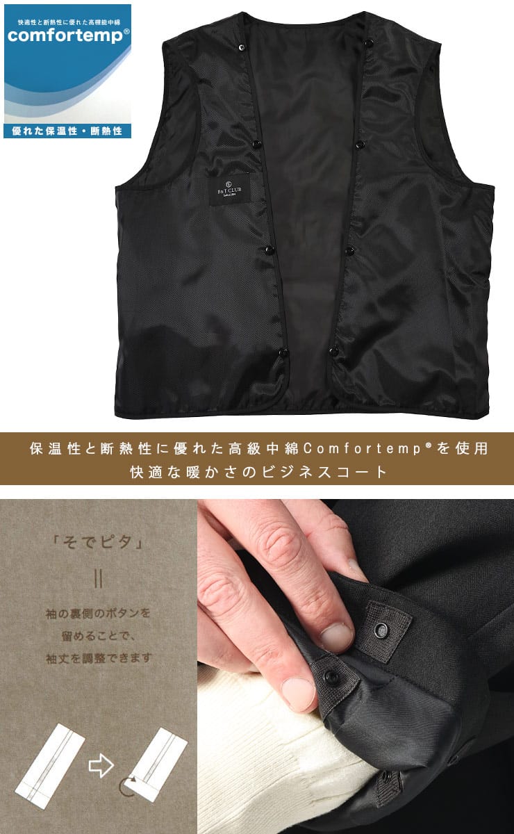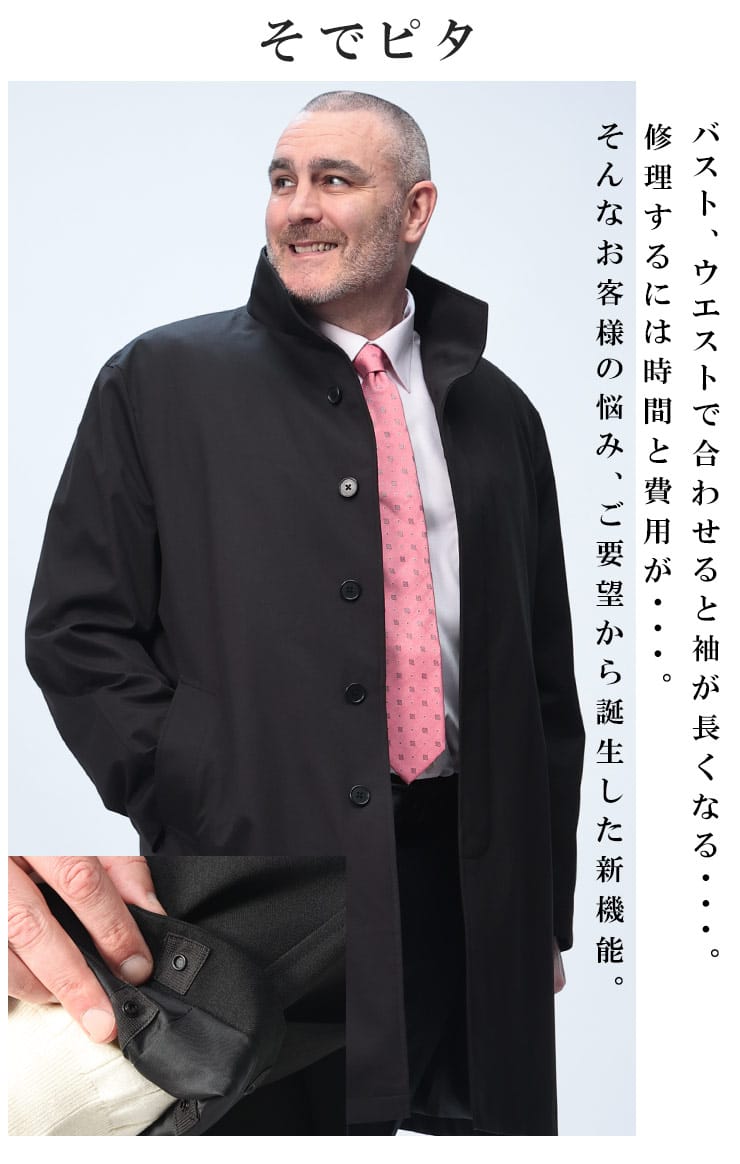 ![]() | そでピタコートシリーズ スーツやジャケットの上に羽織るものなので少しゆったりサイズを選びたいけでも、袖丈が長過ぎるのが気になる・・・ そんなお悩みを解決する"そでピタ"コート。袖裏のボタンを留めることで簡単に袖の長さが調整できる優れもの >> 商品一覧はこちら |