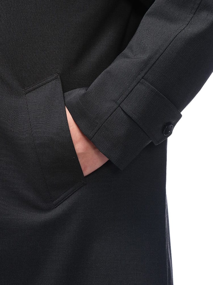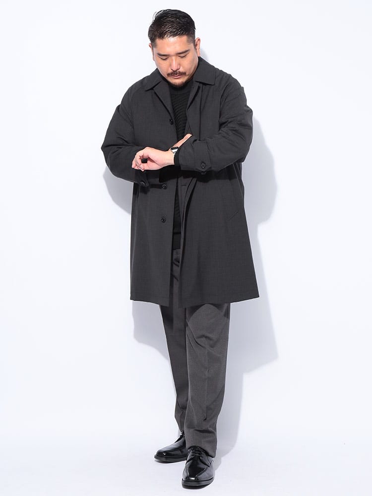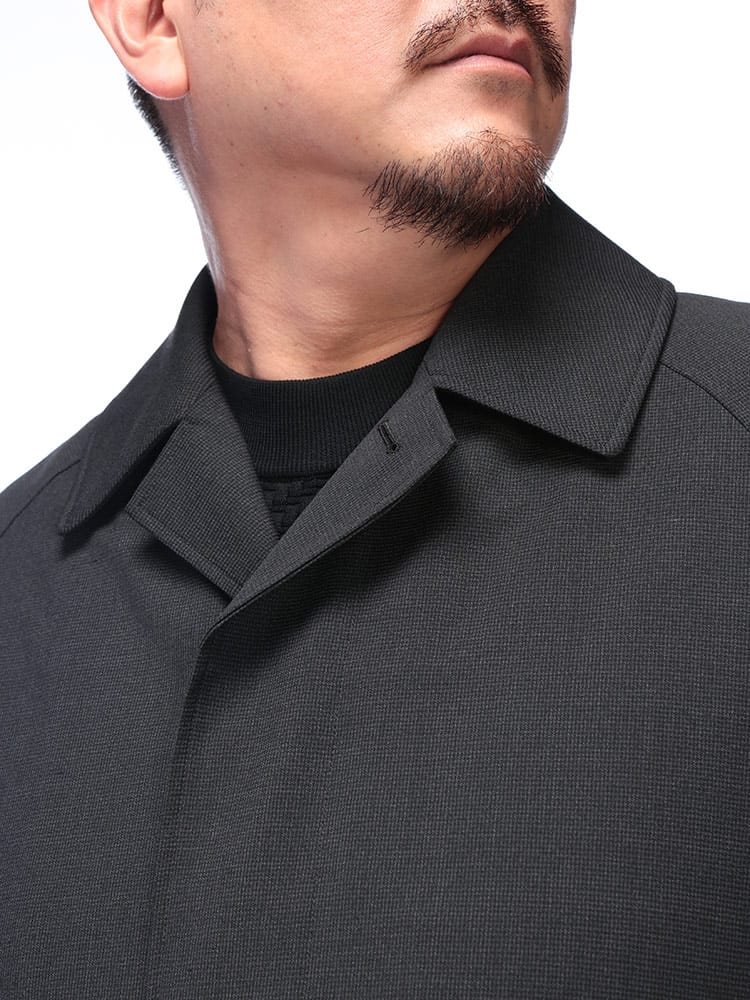 ポルトガルを代表するテキスタイルメーカー、パオロ・オリベイラ社の生地を贅沢に使用した、B&T CLUBのシングルステンカラーコート。上品なハリと光沢、そして滑らかな質感が魅力です。中綿入りで暖かく、ビジネスからきれいめカジュアルまで幅広いシーンで活躍します。飽きのこないシンプルなデザインで、長く愛用できる一着です。