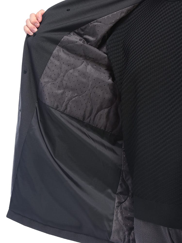 素材 :[表地]ポリエステル54% 毛44% ポリウレタン2%(裏面ポリウレタンラミネート加工) [裏地]ポリエステル100% [中綿]ポリエステル100%