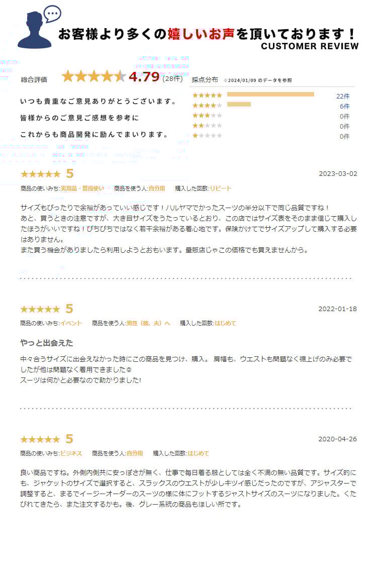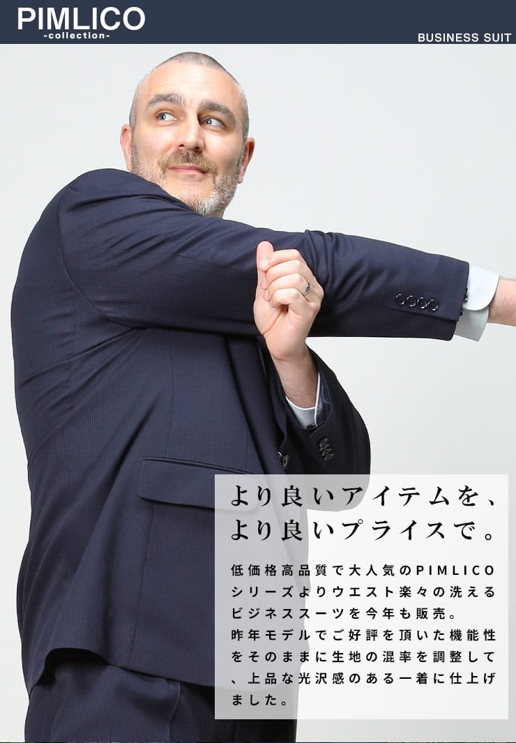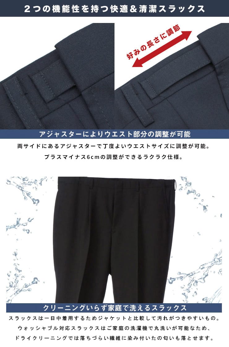 仕様 :アウター外側ポケット数×3つ / 内側ポケット数×4つ / パンツ外側ポケット数×4つ / シングル2つボタン / 背抜き / センターベント / セッパタイプ / 額縁なし / ワンタック / ウエストアジャスター / ウォッシャブル