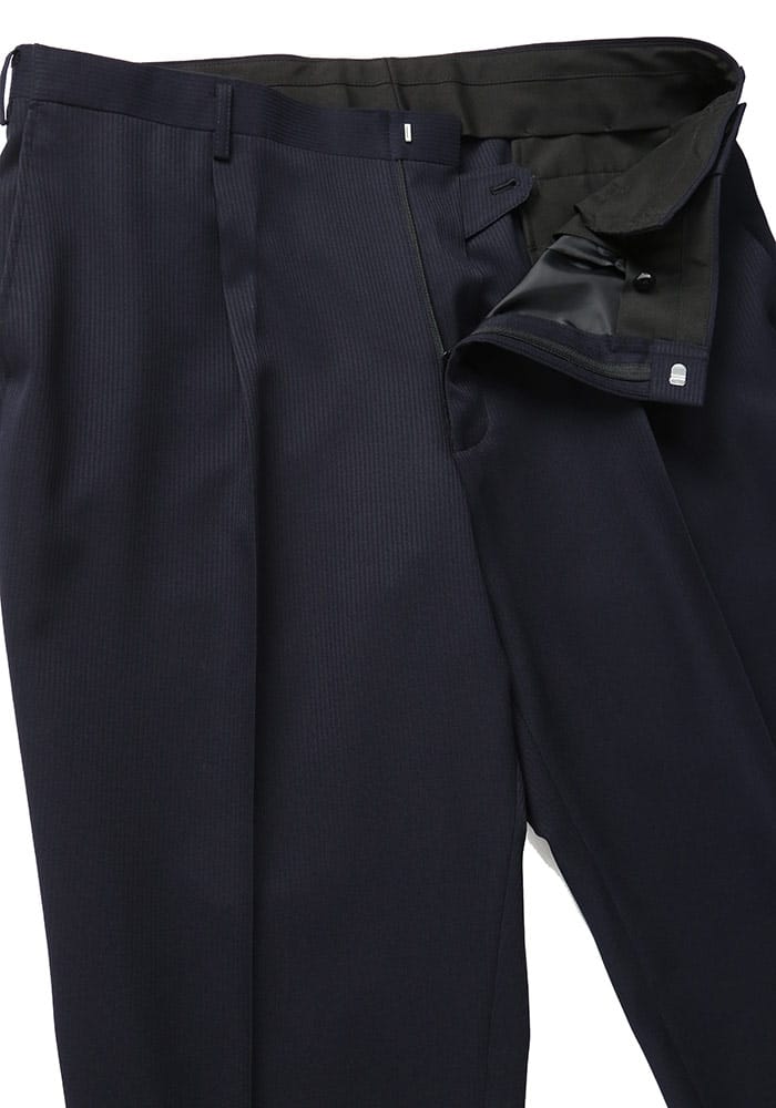 自宅で洗濯できる、お手入れしやすいウォッシャブル シングル スーツです。ビジネススタイル定番のシャドウストライプが落ち着いた雰囲気を見せるシルエット。スラックスにはウエストアジャスターが付いているので腰周りに圧迫を感じない調整ができる仕様となっています。