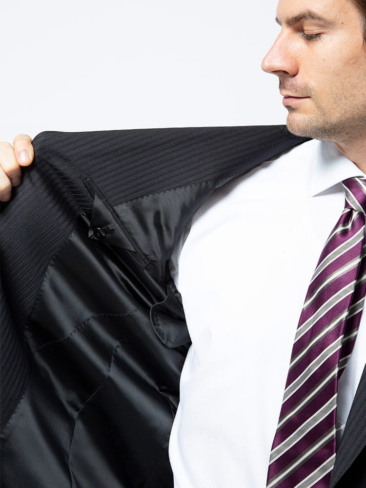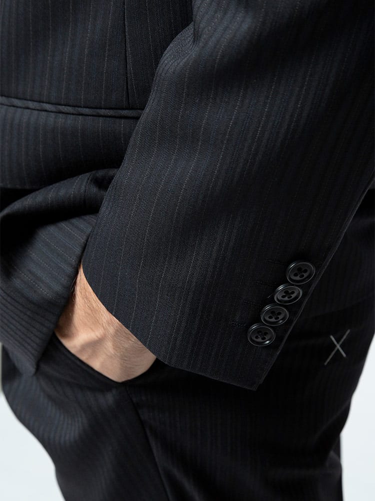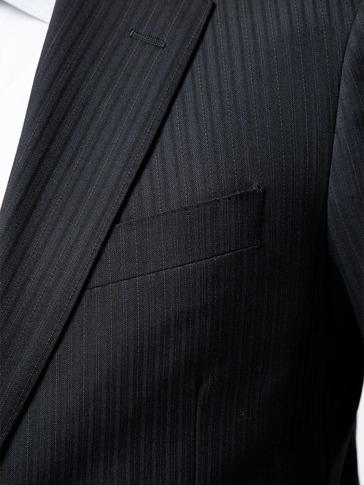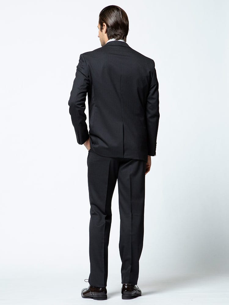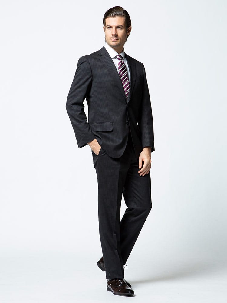 洗練された印象のストライプデザインのウール混 シングル 2ツ釦 ツーパンツ スーツ。雨や水に強く、ラインが消えにくいプリーツ加工を施しています。ご家庭で簡単にお手入れが出来る上下ウォッシャブル機能付き。パンツは毎日着るビジネスマンには嬉しい2本セット。ウール混の上品な生地感も魅力です。