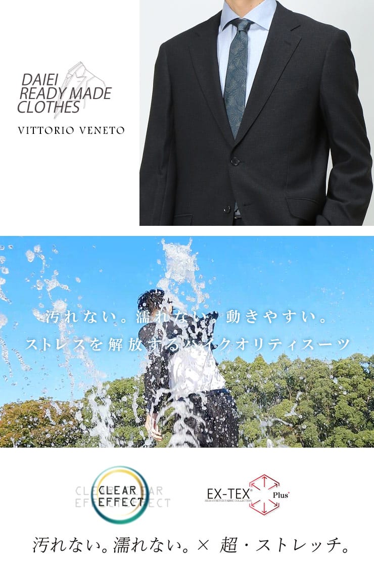 リラックスできるスタイリング、ストレスを感じさせない大人のブランド、ヴィットリオベネトのウエストアジャスター シングル 2パンツ スーツです。雨は水ハネ、油汚れなどを気にせず着用できる「汚れない」「濡れない」、CLEAR EFFECT加工が施された機能性の高いスーツ。また、ウォッシャブルタイプなのでご家庭で洗濯することができるのも嬉しいポイント。
