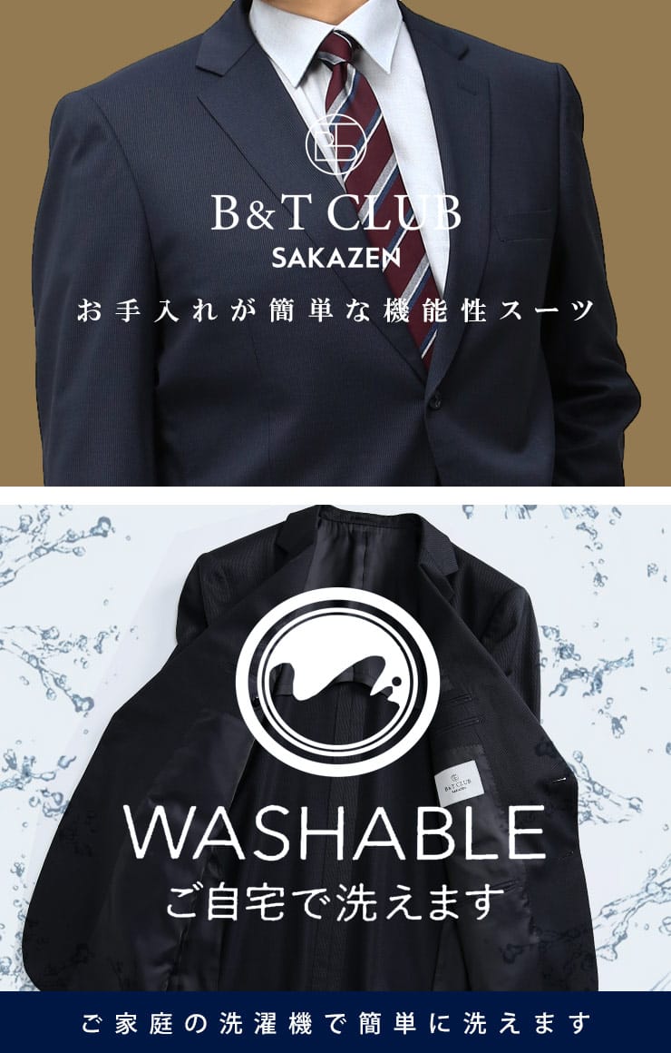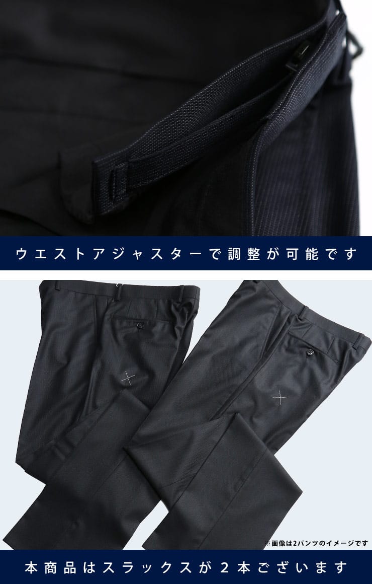 リラックスできるスタイリングで着心地抜群。長時間着用してもストレスを感じさせないウォッシャブルウエストアジャスターシングル 2パンツスーツ。ベーシックデザインなので使いやく、どんなシーンにも着用できます。ご家庭でお手入れ出来るウォッシャブル機能付きです。ウエストアジャスターでゆったりとした着用感です。毎日着るビジネスマンには嬉しい2パンツセット。
