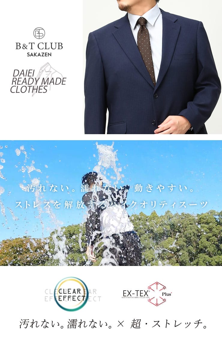 リラックスできるスタイリング、ストレスを感じさせないウエストアジャスター シングル 2パンツ スーツです。雨は水ハネ、油汚れなどを気にせず着用できる「汚れない」「濡れない」、CLEAR EFFECT加工が施された機能性の高いスーツ。また、ウォッシャブルタイプなのでご家庭で洗濯することができるのも嬉しいポイント。毎日着るビジネスマンには嬉しい2パンツセット。リラックスと上品さを兼ね備えた上質な一着です。