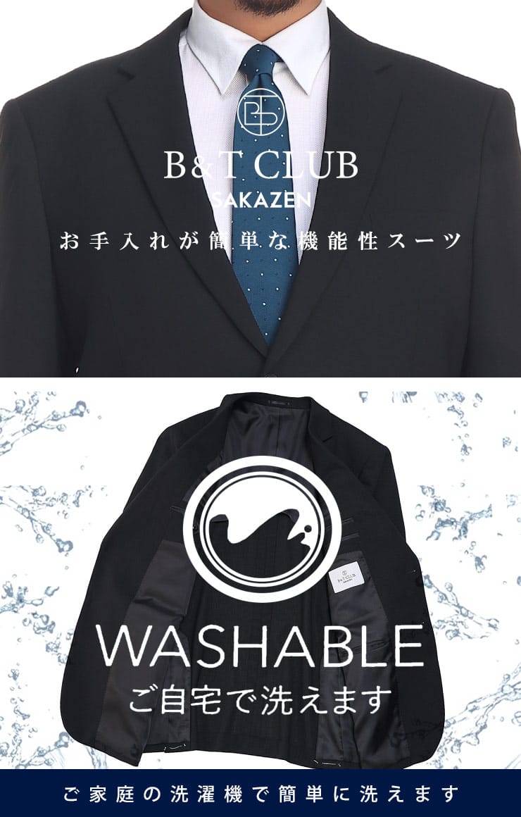 リラックスできるスタイリングで着心地抜群。長時間着用してもストレスを感じさせないウォッシャブルウエストアジャスターシングル 2パンツスーツ。ベーシックデザインなので使いやく、どんなシーンにも着用できます。ご家庭でお手入れ出来るウォッシャブル機能付きです。ウエストアジャスターでゆったりとした着用感です。毎日着るビジネスマンには嬉しい2パンツセット。