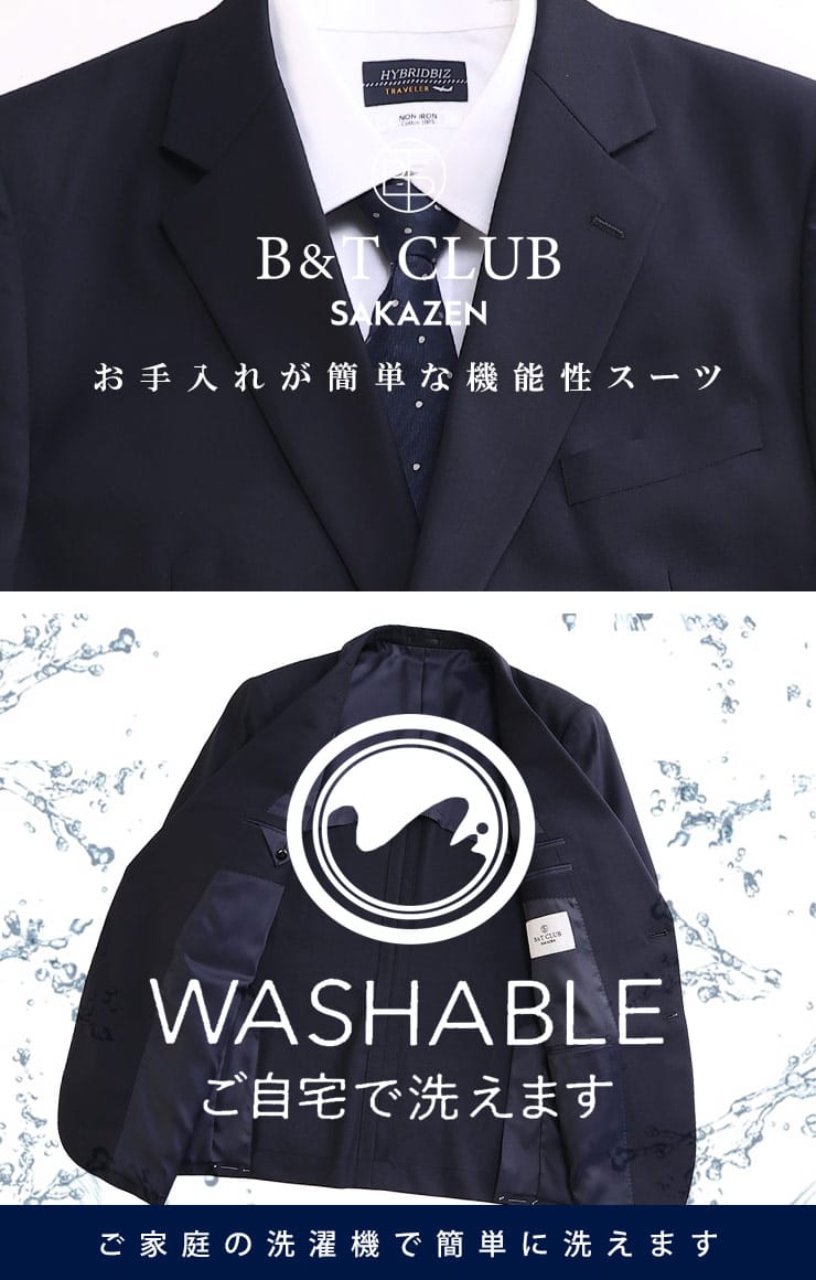 自宅で洗濯できる、お手入れしやすいウォッシャブル シングル ツーパンツスーツです。ウール混の生地感は上品さを感じられる仕上がりになっています。あらゆるシーンに対応する無地タイプの生地が落ち着いた雰囲気を見せるシルエット。スラックスにはウエストアジャスターが付いているので腰周りに圧迫を感じない調整ができる仕様となっています。お家で簡単にお手入れできるので、毎日着用するスーツだからこそ、清潔感を保てる嬉しいウォッシャブルスーツです。