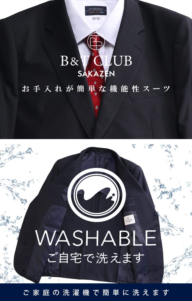 自宅で洗濯できる、お手入れしやすいウォッシャブル シングル ツーパンツスーツです。ウール混の生地感は上品さを感じられる仕上がりになっています。ビジネススタイル定番のシャドーストライプが落ち着いた雰囲気を見せるシルエット。スラックスにはウエストアジャスターが付いているので腰周りに圧迫を感じない調整ができる仕様となっています。お家で簡単にお手入れできるので、毎日着用するスーツだからこそ、清潔感を保てる嬉しいウォッシャブルスーツです。