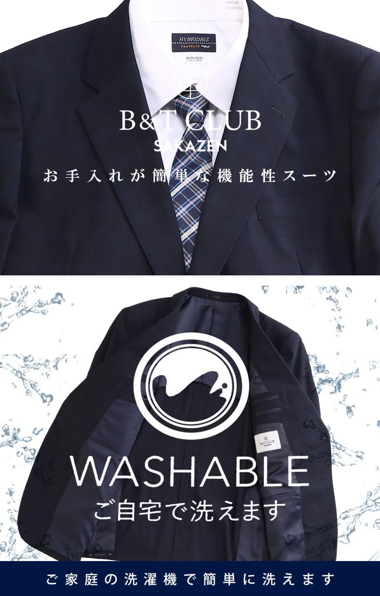 自宅で洗濯できる、お手入れしやすいウォッシャブル シングル ツーパンツスーツです。ウール混の生地感は上品さを感じられる仕上がりになっています。ビジネススタイル定番のシャドータータンチェックが落ち着いた雰囲気を見せるシルエット。スラックスにはウエストアジャスターが付いているので腰周りに圧迫を感じない調整ができる仕様となっています。お家で簡単にお手入れできるので、毎日着用するスーツだからこそ、清潔感を保てる嬉しいウォッシャブルスーツです。