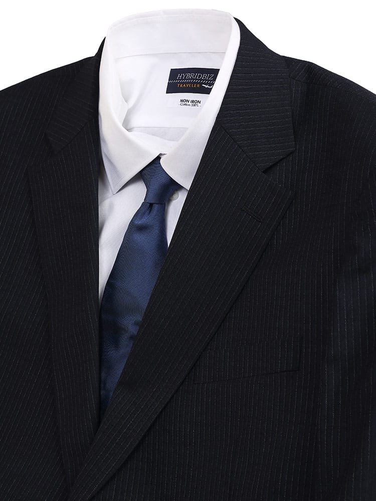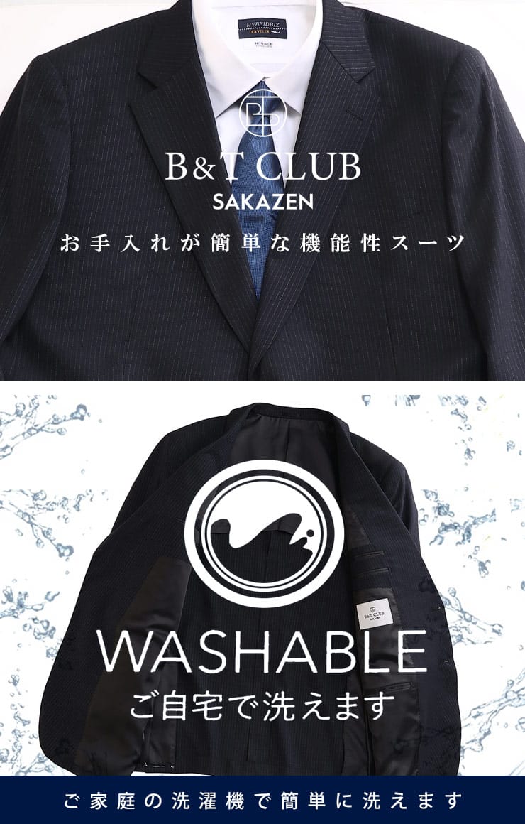 自宅で洗濯できる、お手入れしやすいウォッシャブル シングル ツーパンツスーツです。ウール混の生地感は上品さを感じられる仕上がりになっています。ビジネススタイル定番のシャドーピンストライプが落ち着いた雰囲気を見せるシルエット。スラックスにはウエストアジャスターが付いているので腰周りに圧迫を感じない調整ができる仕様となっています。お家で簡単にお手入れできるので、毎日着用するスーツだからこそ、清潔感を保てる嬉しいウォッシャブルスーツです。