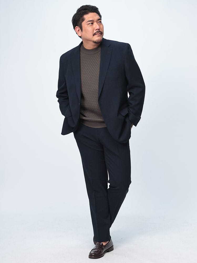 仕様 :外側ポケット数×3つ / 内側ポケット数×2つ / 半裏 / シングル2つボタン / サイドベンツ / ストレッチ