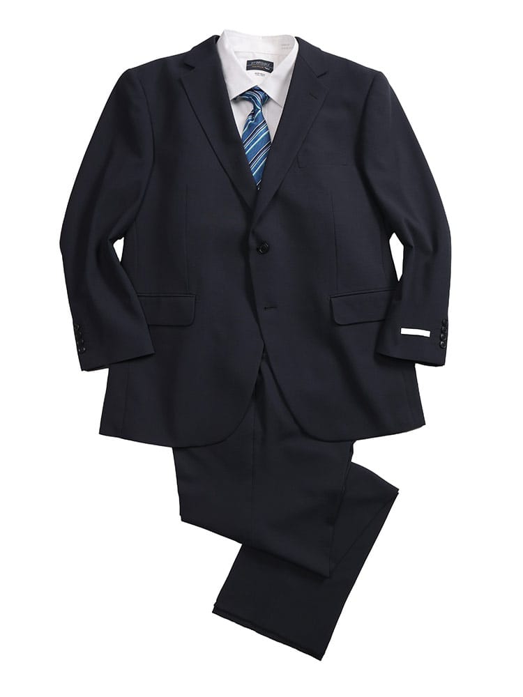 毎日のビジネスを快適に!ZEROWOOLの「ITSUMO」ツーパンツスーツ。忙しいビジネスマンのために生まれた、毎日着たくなる快適なスーツです。ポリエステル100%の生地は、シワになりにくく、イージーケアが可能。ウエストアジャスター付きで、体型の変化にも柔軟に対応。ツーパンツ仕様なので、毎日清潔に着回せます。シングル2つボタンのジャケットは、ビジネスシーンに最適なスマートな印象を与えます。内側と外側に複数のポケットを備え、収納力も抜群。背抜き仕様で、通気性も良く、オールシーズン快適に着用できます。