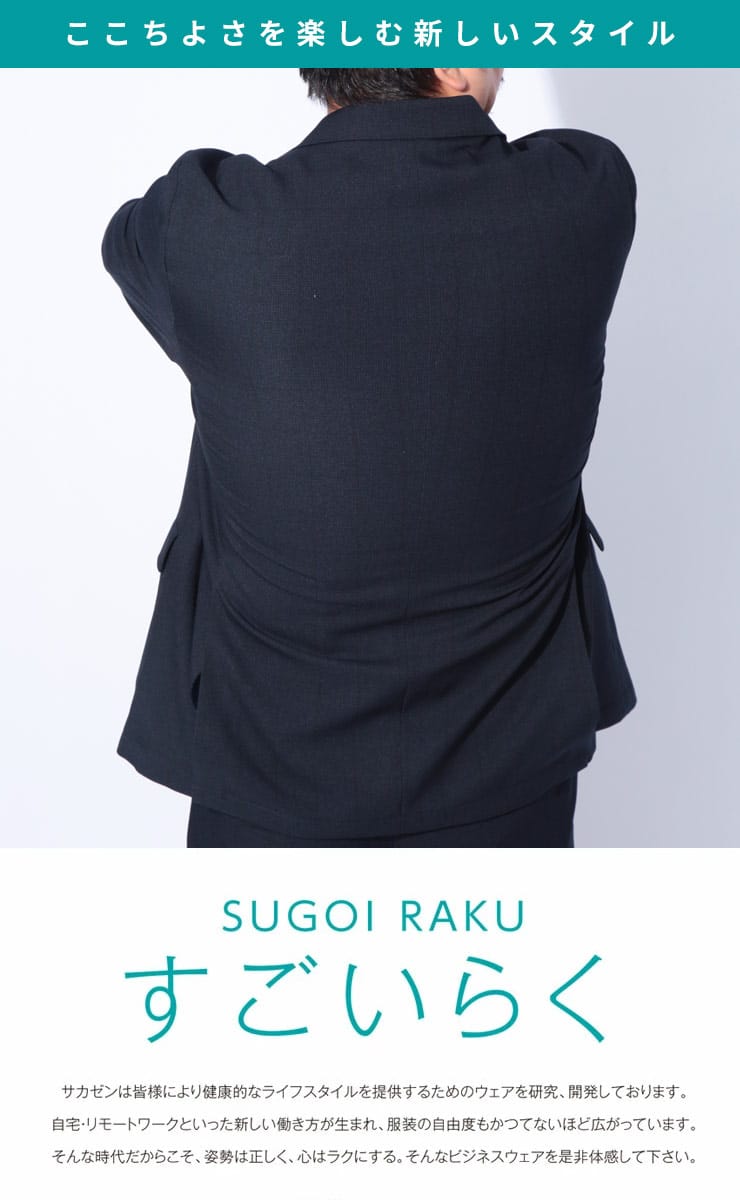 「ハイブリッドビズ (HYBRIDBIZ)」は、スタイリッシュでありながら、ビジネスウェア特有の窮屈さや動きにくさを解消することを目指したシリーズ。その中でも着心地を重視した、従来の商品より2倍伸びる「すごいらく」シリーズです。