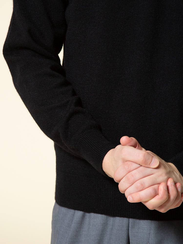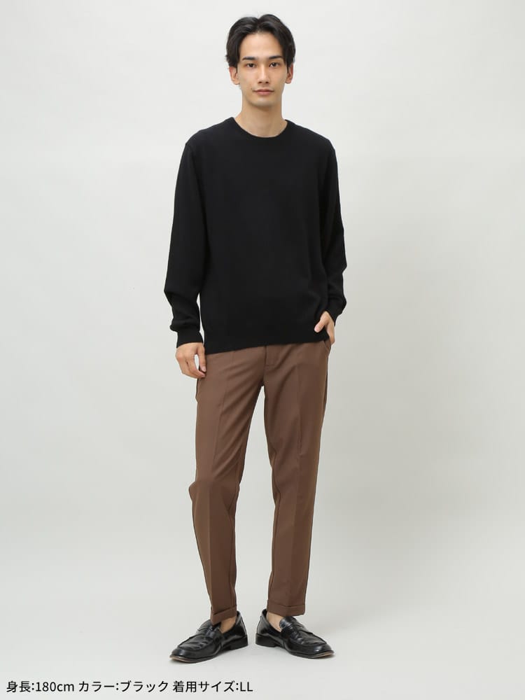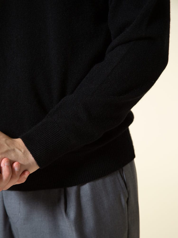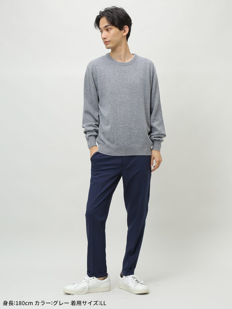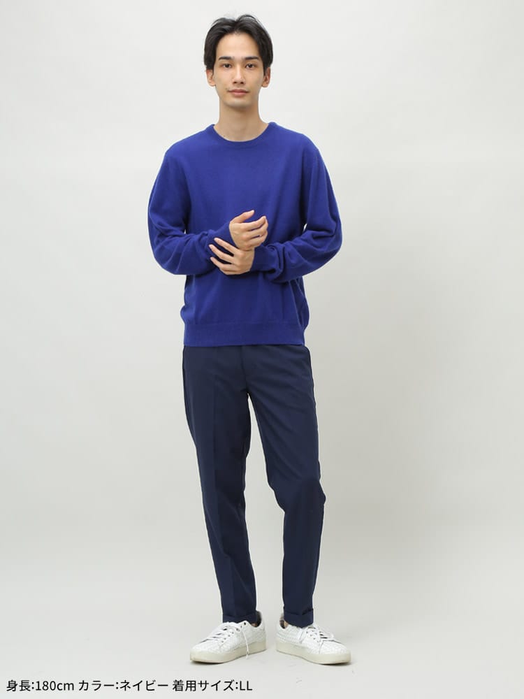 肌触り滑らかなカシミヤで仕上げた無地 ハイネック 長袖 セーターです。無地のベーシックなデザインはどんなスタイルにも取り入れていただけます。首元はクルーネック。ONからOFFまで着ていただけるおすすめのアイテム。