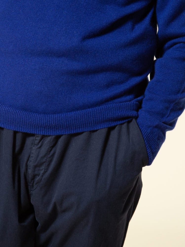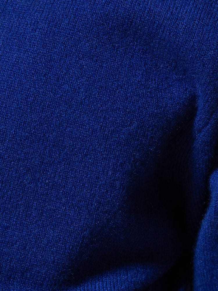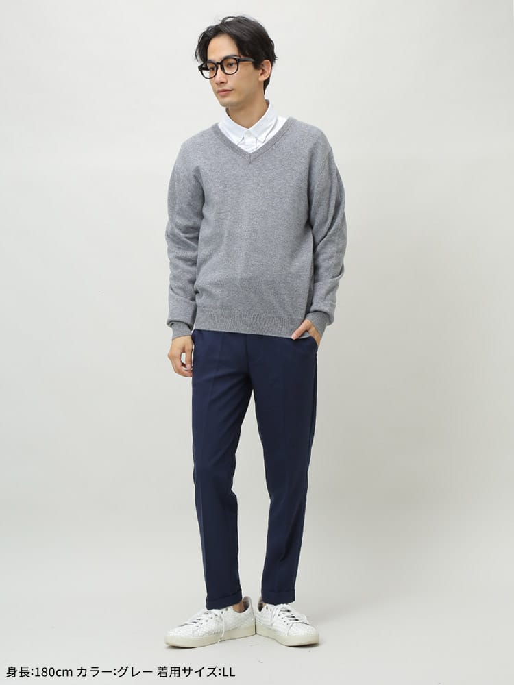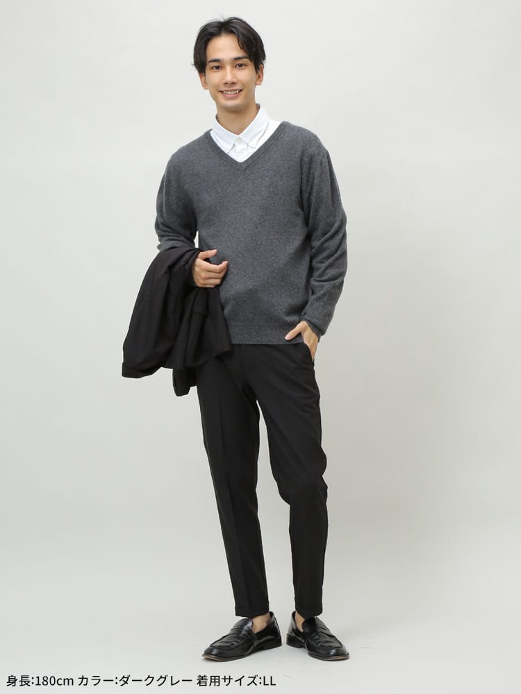 肌触り滑らかなカシミヤで仕上げた無地 ハイネック 長袖 セーターです。無地のベーシックなデザインはどんなスタイルにも取り入れていただけます。首元はVネックデザインでスッキリとした印象のアイテムです。