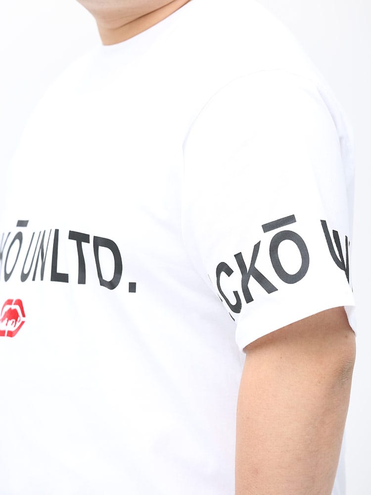 USA発のストリートウェアブランド ECKO UNLTDからインパクトのあるロゴをプリントしたクルーネック 半袖 Tシャツの登場です。袖からボディにかけてのロゴプリントがキャッチーなデザインでストリートシーンに映える一枚。首元はベーシックなクルーネックデザイン。フロント左裾にブランドタグ付き。生地には肌触りの良いコットン生地を使用しています。