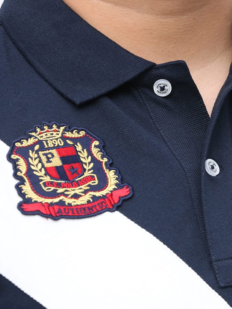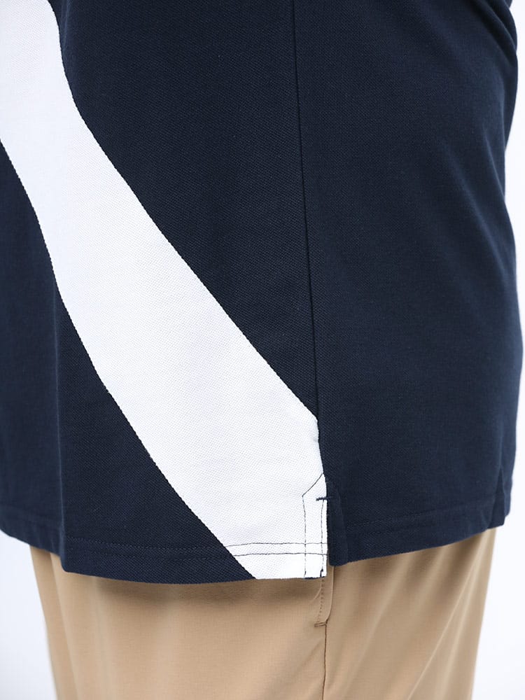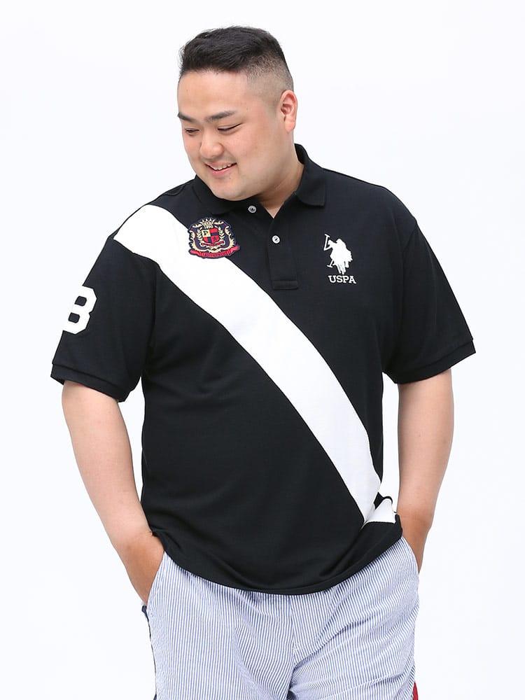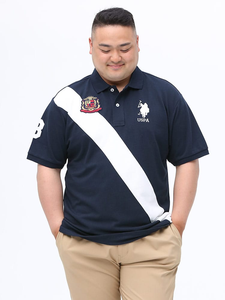 切り替えラインとロゴ刺繍がポイントになった半袖 ポロシャツ。フロント左胸にブランドロゴ刺繍、右胸にロゴワッペン。裾サイドにスリット入り。コットン配合生地を使用し、着心地抜群な一枚。品のあるデザインで大人のカジュアルスタイルにおすすめのアイテムです。