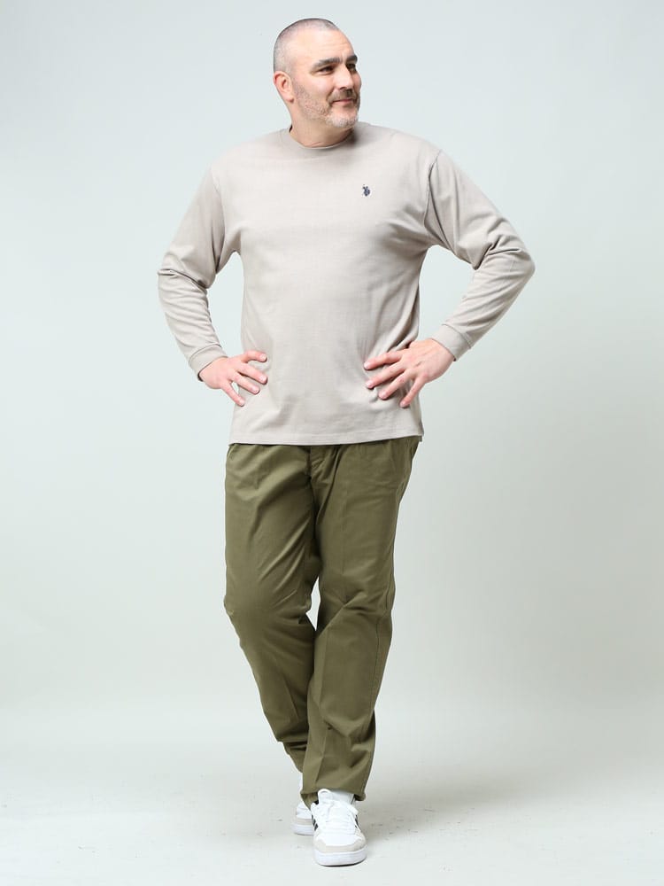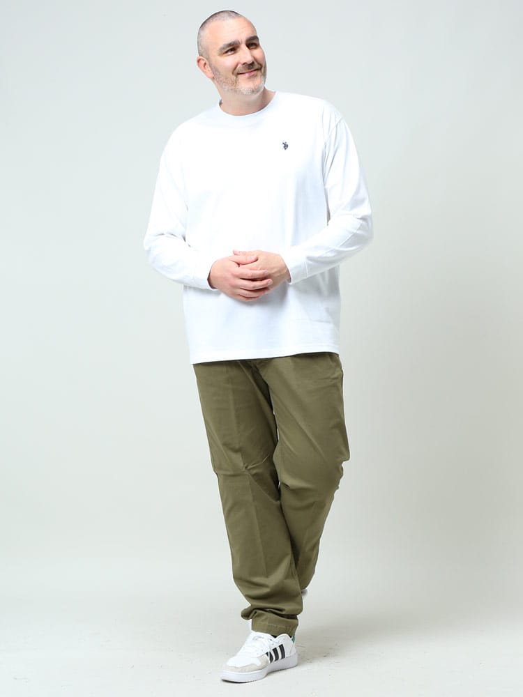 シンプルデザインのU.S. POLO ASSN.のワンポイント クルーネック 長袖 Tシャツです。左胸のロゴ刺繍がポイント。首元はベーシックなクルーネックデザイン。生地には肌触りの良いコットン生地を使用しています。袖はリブ。カジュアルながらも品のあるデザインで、大人のカジュアルスタイルにおすすめの1枚です。