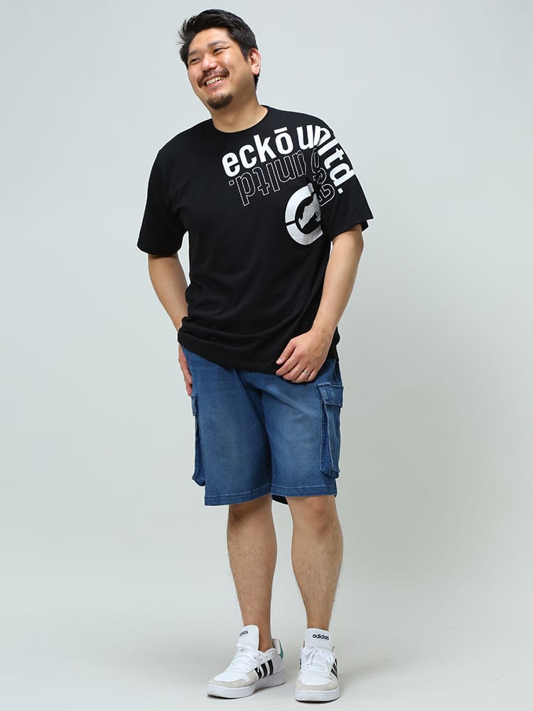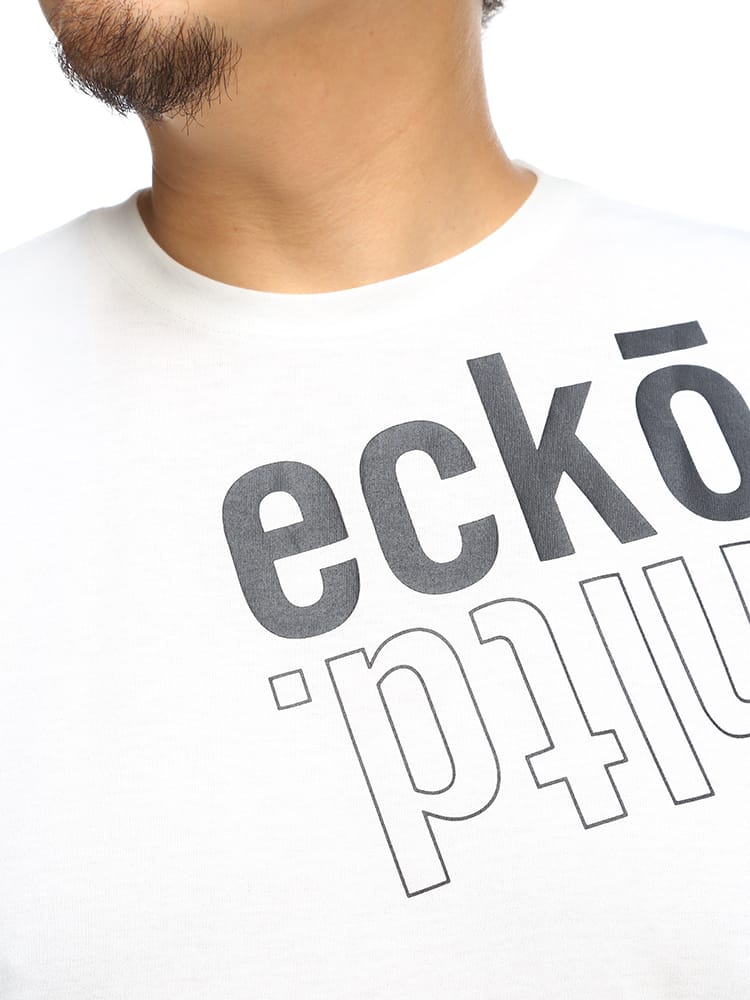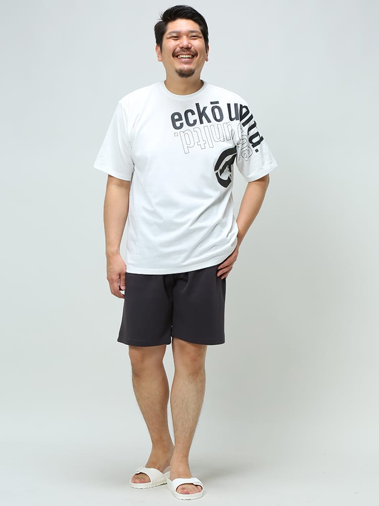 フロントのBIGロゴプリントがポイントになったECKO UNLTDのクルーネック 半袖 Tシャツです。首元はベーシックなクルーネックデザイン。フロント左裾にブランドタグ付き。生地には肌触りの良いコットン配合生地を使用しています。カジュアルやストリートスタイルにマッチする1枚です。