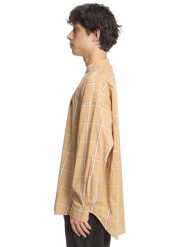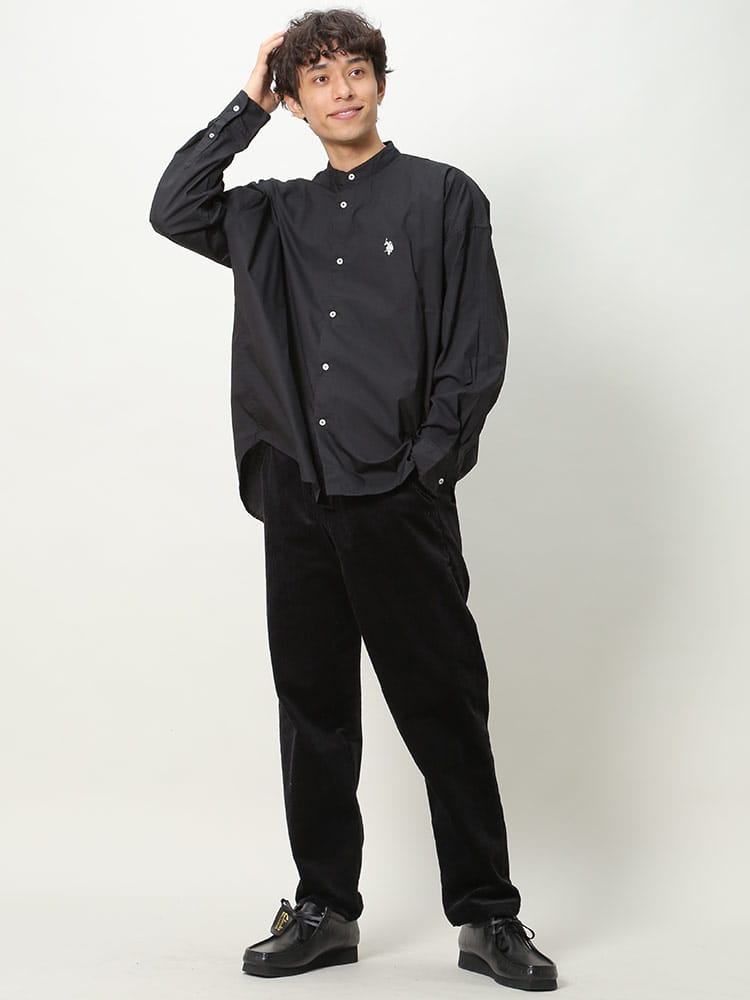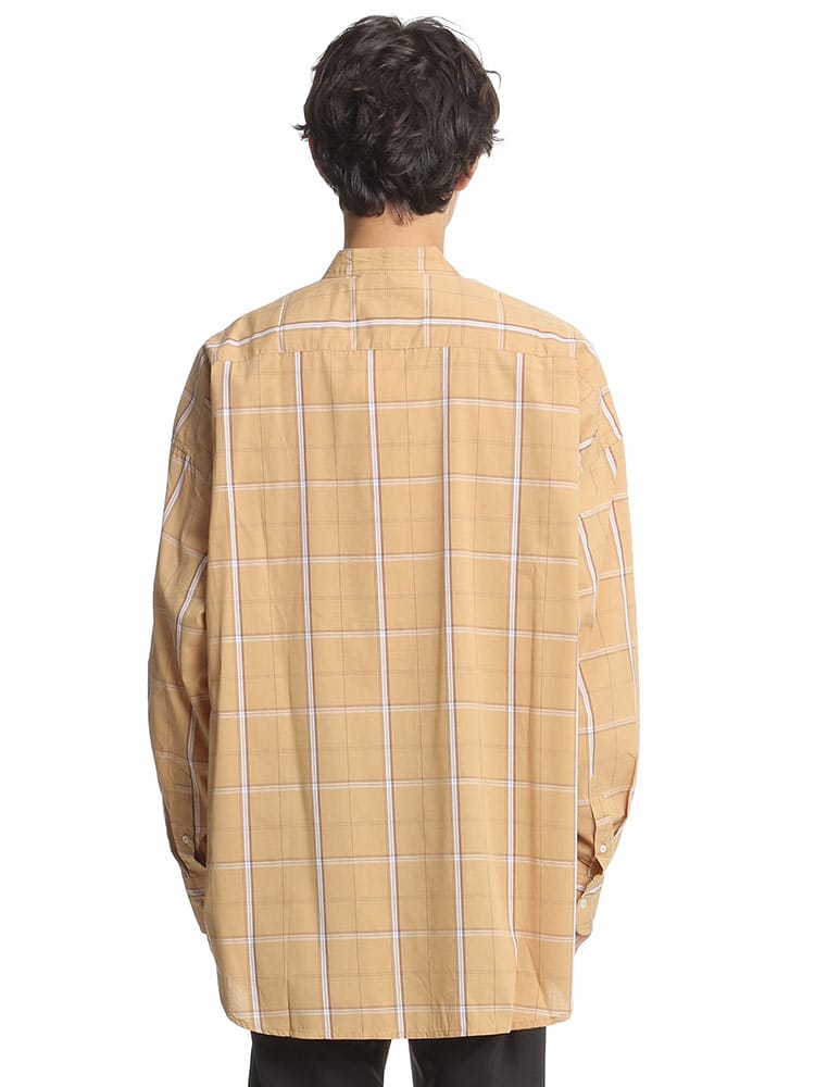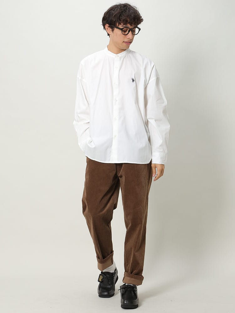 柔らかな肌触りと上品さのある綿ブロードを使用。綿100%で吸水性にも優れています。襟部分がバンドカラーとなっているため、丸みを帯びたすっきりとしたデザインとなっています。オーバーサイズでユニセックスなデザインであり、またこなれ感のあるおしゃれなコーディネートを組んでいただけます。