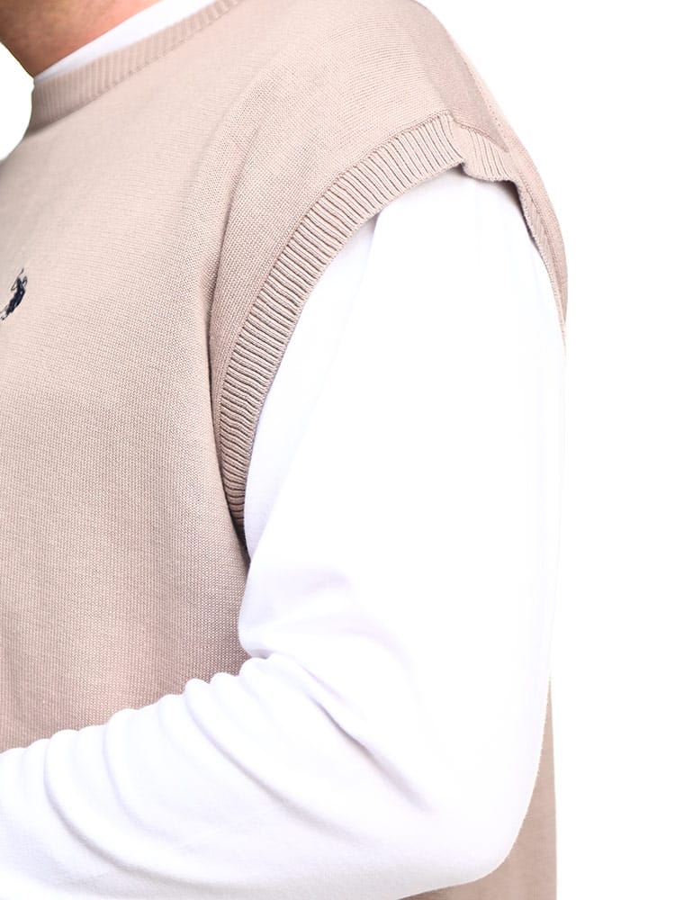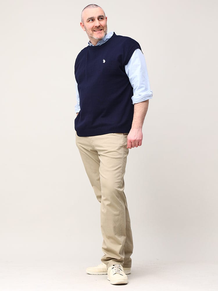 U.S. POLO ASSNの12ゲージニットベストです。カジュアルスタイルの定番、ニットベストはどんなシャツ、Tシャツとも相性抜群のアイテムです。扱いやすさとその上品なシルエットが人気。左胸に刺繍されたロゴマークがワンポイントとして。