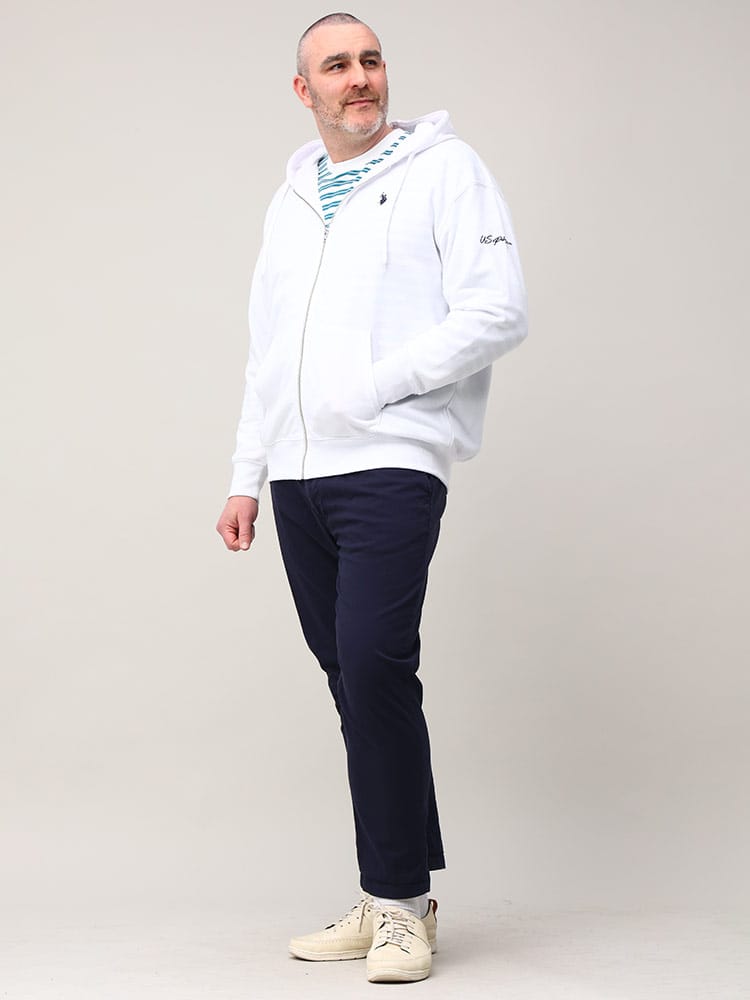 U.S. POLO ASSNのフルジップパーカーです。使い勝手の良いシンプルなスウェットパーカーは、カジュアルスタイルの定番です。アクティブなシーンから普段使いまで、使いどころを選ばないユーティリティアイテム。